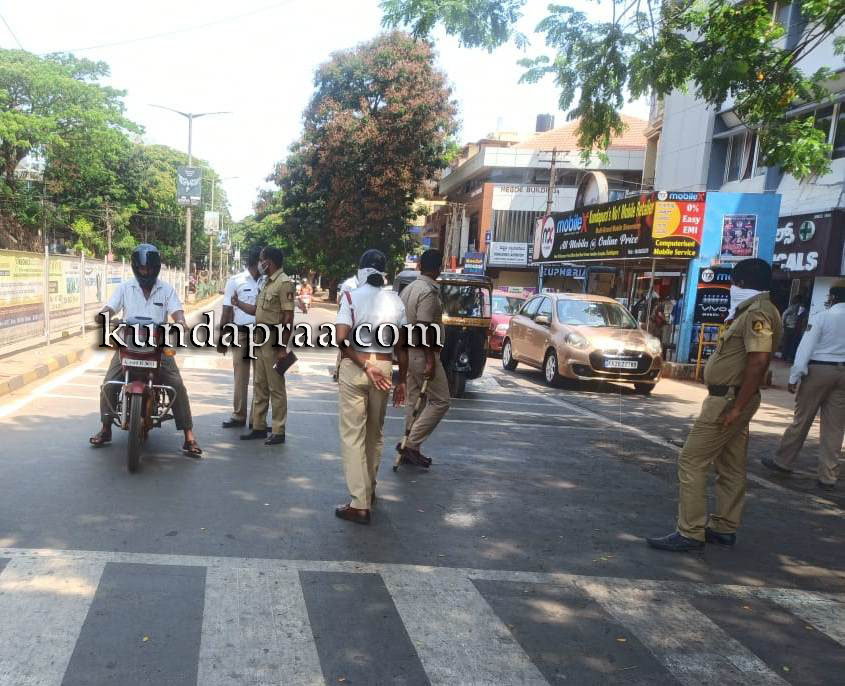 ಮಂಗಳವಾರ ಬೆಳಿಗ್ಗೆಯಿಂದಲೇ ಕುಂದಾಪುರ ಉಪವಿಭಾಗದ ಎಲ್ಲಾ ಠಾಣಾ ವ್ಯಾಪ್ತಿಯಲ್ಲಿ ಪೊಲೀಸರು ಚುರುಕಿನ ಕಾರ್ಯಾಚರಣೆ ನಡೆಸಿದರು. ತುರ್ತು ಸೇವೆಗಳ ಅಂಗಡಿಗಳನ್ನು ಹೊರತುಪಡಿಸಿ ಉಳಿದೆಲ್ಲಾ ಅಂಗಡಿಗಳನ್ನು ಮುಚ್ಚಿಸಿದರು. ರಸ್ತೆಯಲ್ಲಿ ವಿವಿಧ ವಾಹನಗಳಲ್ಲಿ ತಿರುಗಾಡುತ್ತಿದ್ದವರನ್ನು ತಡೆದು ನಿಲ್ಲಿಸಿ ಅನಗತ್ಯವಾಗಿ ಸಂಚಾರ ಮಾಡದಂತೆ ಎಚ್ಚರಿಕೆ ನೀಡಿ ಕಳುಹಿಸುತ್ತಿದ್ದುದು ಕಂಡುಬಂತು. ಹೋಮ್ ಕ್ವಾರಂಟೈನ್ನಲ್ಲಿ ಇದ್ದವವರ ಮನೆಗಳಿಗೆ ತೆರಳಿ ಬಿತ್ತಿಪತ್ರ ಅಂಟಿಸಿ ವಿಚಾರಣೆ ನಡೆಸಿದರು. ವ್ಯಕ್ತಿಯಿಂದ ವ್ಯಕ್ತಿಗೆ ಅಂತರ ಕಾಯ್ದುಕೊಳ್ಳಲು ಅಂಗಡಿಗಳ ಎದುರು ಮಾರ್ಕ್ ಮಾಡಲಾಗಿದೆ. ಉಳಿದಂತೆ ಬಹುಪಾಲು ಅಂಗಡಿ ಮುಂಗಟ್ಟುಗಳು ಮುಚ್ಚಿದ್ದವು. ತರಕಾರಿ ಅಂಗಡಿ, ಮೆಡಿಕಲ್ ಮುಂತಾದ ತುರ್ತು ಅಗತ್ಯ ಸಾಮಾಗ್ರಿಗಳ ಅಂಗಡಿ ಎದುರು ಜನರು ನಿಂತಿರುವುದು ಕಂಡುಬಂತು./ ಕುಂದಾಪ್ರ ಡಾಟ್ ಕಾಂ ಸುದ್ದಿ./