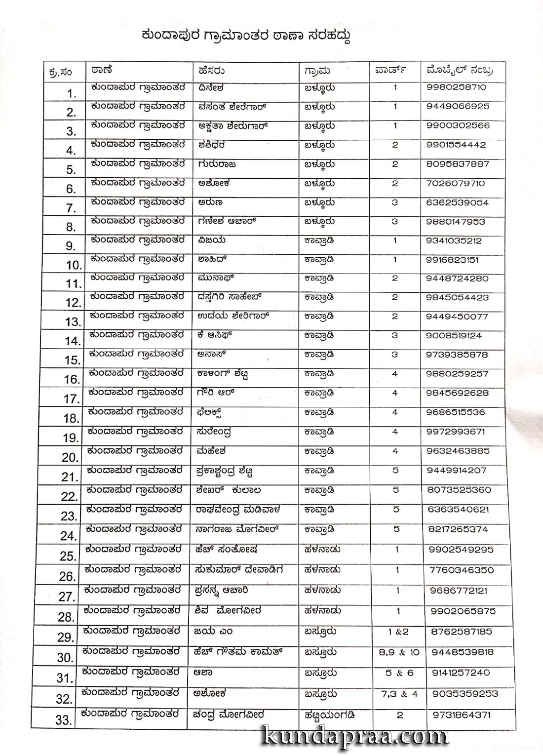 ಗ್ರಾಮ ಪಂಚಾಯತ್ ವ್ಯಾಪ್ತಿಯ ವಾರ್ಡ್ವಾರು ಸದಸ್ಯರ ಸಂಪರ್ಕ ಈ ಕೆಳಗಿದೆ.