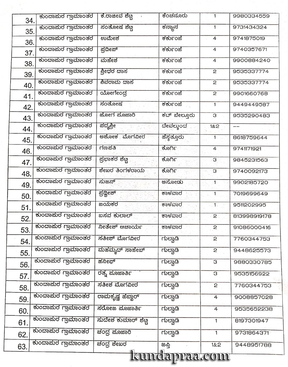 ಎಲ್ಲಾ 65 ಗ್ರಾಮ ಪಂಚಾಯತ್ನ ಎಲ್ಲಾ ವಾರ್ಡ್ಗಳಲ್ಲಿ ಕೋವಿಡ್ -19 ಟಾಸ್ಕ್ ಪೋರ್ಸ್ನ ಇಬ್ಬರು ಸದಸ್ಯರು ಕಾರ್ಯನಿರ್ವಹಿಸಿಲಿದ್ದಾರೆ. ಅವರಿಗೆ ಅಗತ್ಯ ವಸ್ತುಗಳನ್ನು ತಲುಪಿಸಲು ಒಂದು ವಾಹನದ ವ್ಯವಸ್ಥೆಯನ್ನೂ ಮಾಡಲಾಗಿದೆ. ಸಾರ್ವಜನಿಕರು ತರಕಾರಿ ಹಾಗೂ ದಿನಸಿ ವಸ್ತುಗಳ ಅಗತ್ಯವಿದ್ದರೆ ವಾರ್ಡ್ ಸದಸ್ಯರಿಗೆ ಕರೆ ಮಾಡಿದರೆ (ಮೊಬೈಲ್ ನಂಬರ್ ಪಟ್ಟಿ ಕೆಳಗಿದೆ) ಅವರೇ ನಿಮ್ಮ ಮನೆಗೆ ಅವುಗಳನ್ನು ತಲುಪಿಸಿ, ಹಣ ತೆಗೆದುಕೊಳ್ಳಲಿದ್ದಾರೆ. ಕನಿಷ್ಠ ಒಂದು ವಾರಕ್ಕೆ ಆಗುವಷ್ಟು ದಿನಬಳಕೆಯ ವಸ್ತುಗಳನ್ನು ಒಂದೇ ಭಾರಿಗೆ ತರಿಸಿಕೊಳ್ಳುವಂತೆ ಸಲಹೆ ನೀಡಲಾಗಿದೆ.