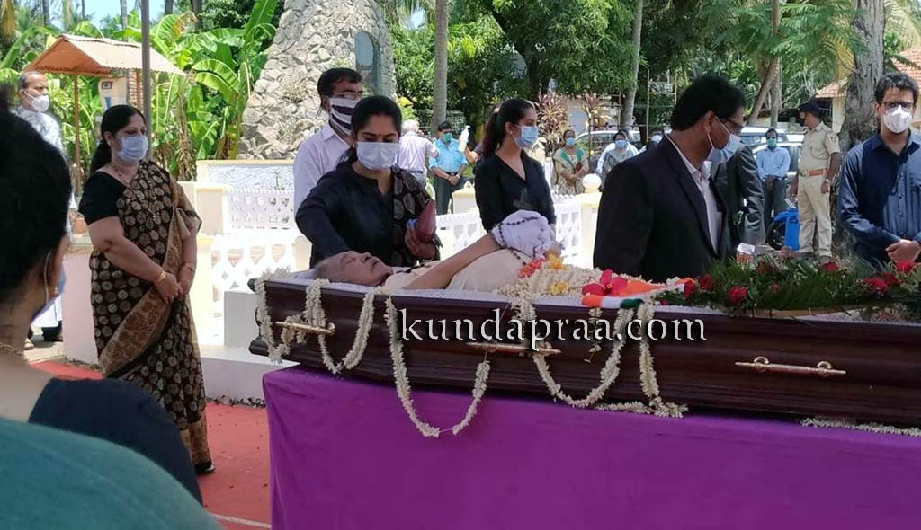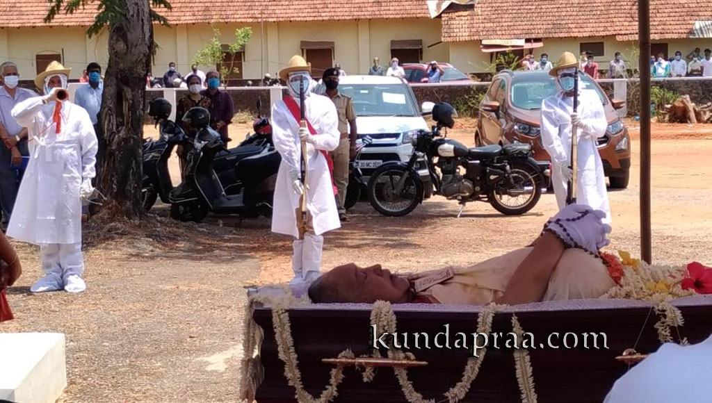 ಕೋವಿಡ್ 19 ಲಾಕ್ಡೌನ್ ಹಿನ್ನೆಲೆಯಲ್ಲಿ ಅವರ ಕುಟುಂಬಿಕರು ಮಾತ್ರ ಪಾಲ್ಗೊಂಡಿದ್ದರು. ಎಎಸ್ಪಿ ಹರಿರಾಮ್ ಶಂಕರ್ ನೇತೃತ್ವದಲ್ಲಿ ಸರಕಾರಿ ಗೌರವ ಸಲ್ಲಿಸಲಾಯಿತು.ಮೃತರ ಗೌರವಾರ್ಥ ಗಾಳಿಯಲ್ಲಿ ಮೂರು ಸುತ್ತು ಗುಂಡು ಹಾರಿಸಲಾಯಿತು. ಊರಿನ ನಾಗರಿಕರು, ಅಭಿಮಾನಿಗಳು ಅವರ ಪಾರ್ಥಿವ ಶರೀರ ಬರುವ ಹಾದಿಯಲ್ಲಿ ಮನೆಯಂಗಳದಲ್ಲಿಯೇ ನಿಂತು ಗೌರವ ಸೂಚಿಸಿದರು.