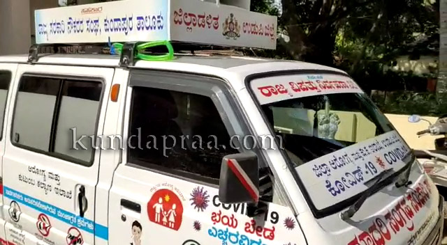 ಮಾದರಿ ಸಂಗ್ರಹ ಸಂಚಾರಿ ಘಟಕದಲ್ಲಿ ಕೋವಿಡ್ ಕುರಿತು ಅರಿವು ಮೂಡಿಸುವ ಸಲುವಾಗಿ ಧ್ವನಿವರ್ದಕವನ್ನು ಅಳವಡಿಸಲಾಗಿದೆ. ಕುಂದಾಪ್ರ ಡಾಟ್ ಕಾಂ ವರದಿ.