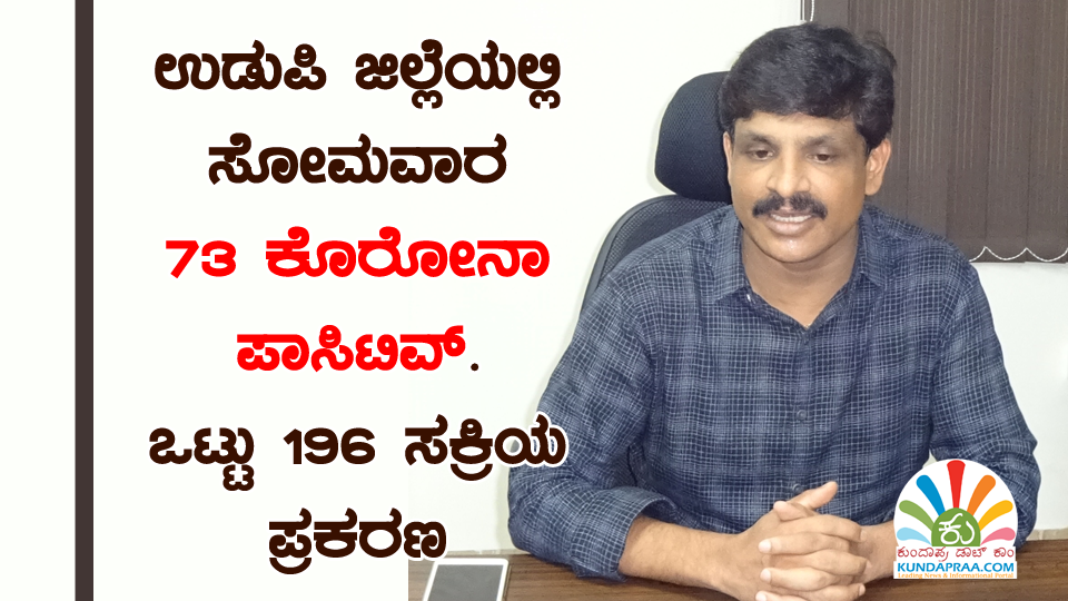 ► ಮಹಾಘಾತ: ಉಡುಪಿ ಜಿಲ್ಲೆಯಲ್ಲಿ ಸೋಮವಾರ 73 ಕೊರೋನಾ ಪಾಸಿಟಿವ್ – https://kundapraa.com/?p=38126 .
