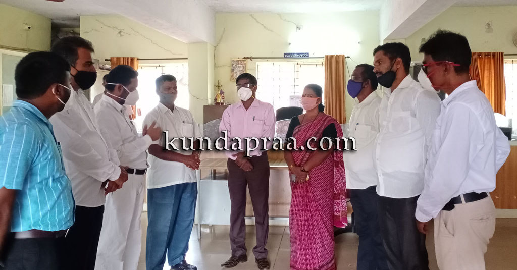 ಗುರುವಾರ ಬೈಂದೂರು ತಹಶೀಲ್ದಾರ್ ಬಸಪ್ಪ ಪಿ. ಪೂಜಾರ್ ಅವರನ್ನು ಭೇಟಿ ಮಾಡಿ ತಾಲೂಕು ವ್ಯಾಪ್ತಿಯಲ್ಲಿ ಕೋವಿಡ್ ಪ್ರಕರಣಗಳನ್ನು ನಿರ್ವಹಿಸುವಲ್ಲಿ ಆಗುತ್ತಿರುವ ಗೊಂದಲಗಳ ಬಗ್ಗೆ ಮನವರಿಕೆ ಮಾಡಿತು.