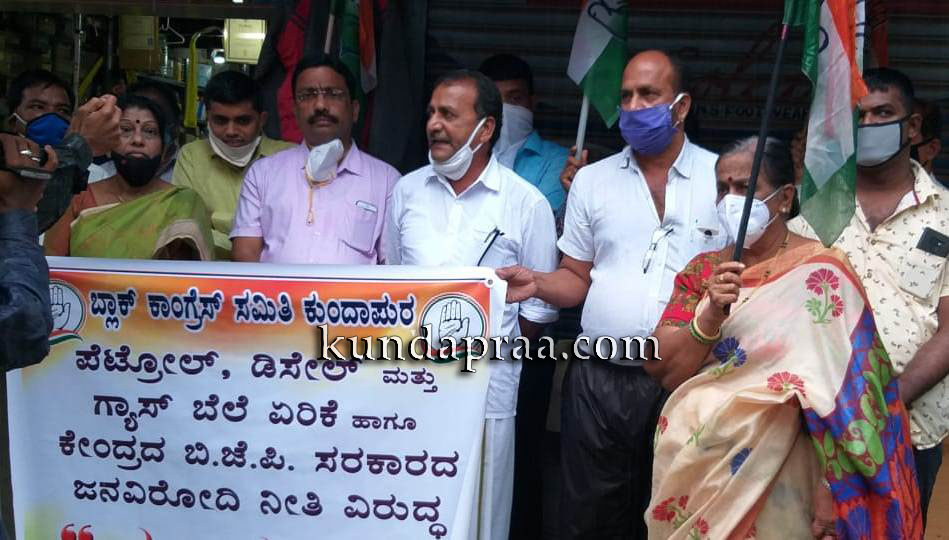 ಬ್ಲಾಕ್ ಕಾಂಗ್ರೆಸ್ ವತಿಯಿಂದ ಕುಂದಾಪುರ ಬ್ಲಾಕ್ ಕಾಂಗ್ರೆಸ್ ಕಚೇರಿ ಎದುರು ನಡೆದ ಪ್ರತಿಭಟನಾ ಸಭೆಯ ನೇತ್ರತ್ವ ವಹಿಸಿ ಮಾತನಾಡಿ ಹಿಂದೆ ಮನ ಮೋಹನ ಸಿಂಗ್ ಪ್ರಧಾನ ಮಂತ್ರಿಯಾಗಿದ್ದಾಗ ಅಂತಾರಾಷ್ಟ್ರಿಯ ಮಟ್ಟದಲ್ಲಿ ಕಚ್ಚಾ ತೈಲ ಬೆಲೆ ಗಗನಕ್ಕೆ ಎರಿದಾಗ ದೇಶದಲ್ಲಿ ತೈಲ ಬೆಲೆ ಹೆಚ್ಚಿಸಿದಾಗ ಬೀದಿಗಿಳಿದು ಹೋರಾಟ ಮಾಡಿವವರೇ ಈಗ ಅಧಿಕಾರದಲ್ಲಿದ್ದು ಪ್ರಸ್ತುತ ಅಂತರಾಷ್ಟ್ರಿಯ ಮಾರುಕಟ್ಟೆಯಲ್ಲಿ ಕಚ್ಚಾ ತೈಲ ಬೆಲೆ ಇಳಿಕೆಯಾದುದರಿಂದ 30 ರಿಂದ 35 ರೂಪಾಯಿಗೆ ಡಿಸೇಲ್ ನೀಡಬೇಕಿತ್ತು. ಇದು ಜನ ಸಾಮಾನ್ಯರ ಪರವಾದ ಪ್ರತಿಭಟನೆ ಎಂದ ಅವರು ಕೋವಿಡ್-19 ನಿರ್ವಹಣೆಯಲ್ಲಿ ರಾಜ್ಯ ಸರಕಾರ ಸಂಪೂರ್ಣ ವಿಫಲವಾಗಿದ್ದು ಆರ್ಥಿಕವಾಗಿ ಜನರು ಹೃರಾಣಾಗಿದ್ದಾರೆ ಎಂದರು .