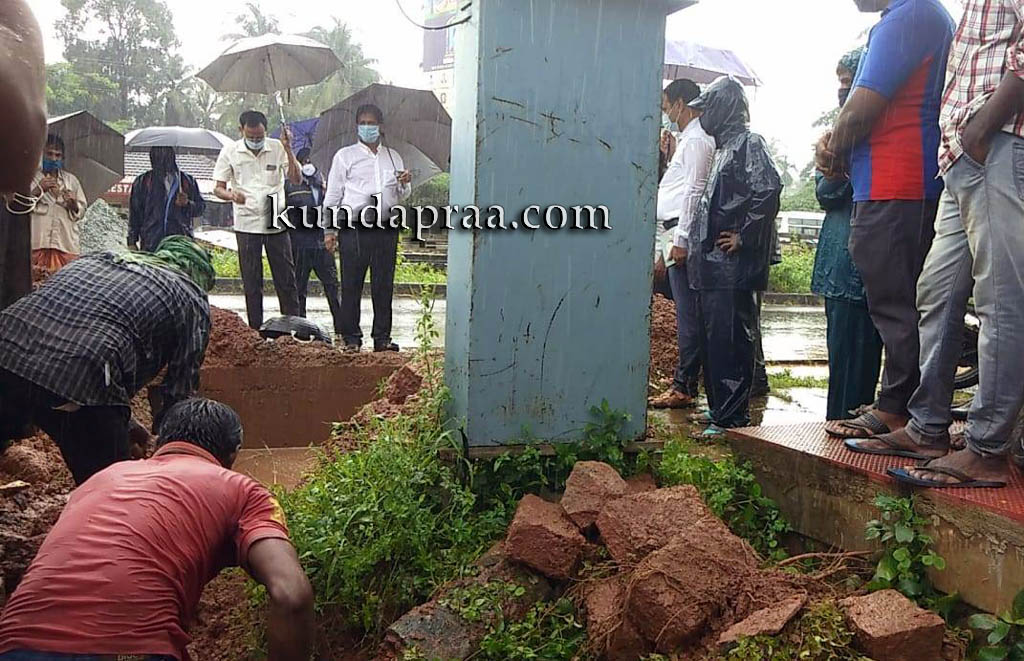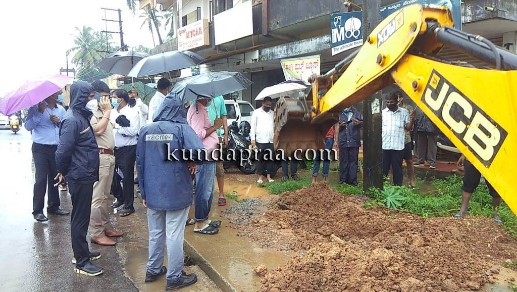 ಸೋಮವಾರ ಸ್ಥಳಕ್ಕೆ ಭೇಟಿ ನೀಡಿದ ಶಾಸಕ ಹಾಲಾಡಿ ಶ್ರೀನಿವಾಸ ಶೆಟ್ಟಿ ಅವರು ಸಂಬಂಧಿತ ಅಧಿಕಾರಿಗಳನ್ನು ತೀವ್ರ ತರಾಟೆಗೆ ತೆಗೆದುಕೊಂಡರು. ಈ ಬಳಿಕ ಬಸ್ರೂರು ಮೂರುಕೈನಿಂದ ವಿನಾಯಕ ಟಾಕೀಸ್ ತನಕ ರಸ್ತೆಯಲ್ಲಿ ತಕ್ಷಣವೇ ತುರ್ತು ದುರಸ್ತಿ ಕಾರ್ಯ ಆರಂಭಿಸಲಾಯಿತು. ನೀರು ಹರಿದು ಹೋಗಲು ಚರಂಡಿಗಳಿಗೆ ಸಂಪರ್ಕ ಕಲ್ಪಿಸಲಾಯಿತು. ಶಾಸಕರು ಖುದ್ದು ನಿಂತು ಸಮಸ್ಯೆ ಸರಿಪಡಿಸಿಲು ಸೂಚಿಸಿದರು.