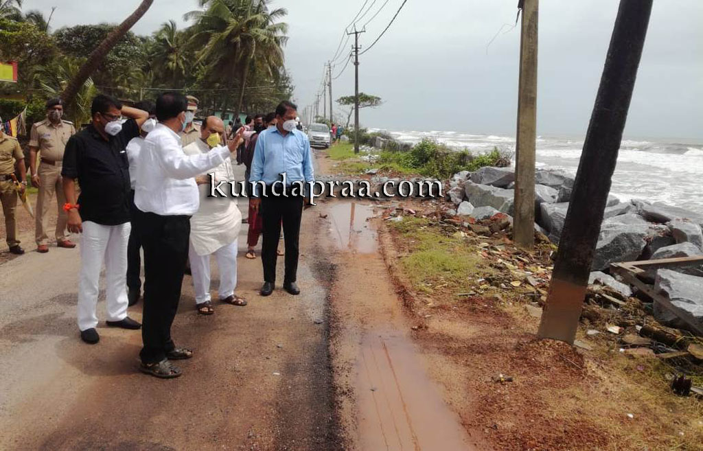 ಕಳೆದ ಕೆಲವು ದಿನಗಳಿಂದ ನಿರಂತರವಾಗಿದ ಗಾಳಿಮಳೆ ಇರುವ ಹಿನ್ನೆಲೆಯಲ್ಲಿ ಎಂ ಕೋಡಿಯಿಂದ ಹಾಯ್ಗುಳಿ ಬಸ್ ನಿಲ್ದಾಣದ ತನಕ ಕಡಲ್ಕೋರೆತ ಉಂಟಾಗಿದ್ದು, ಸಚಿವರು ಈ ಬಗ್ಗೆ ಮಾಹಿತಿ ಪಡೆದುಕೊಂಡ ಕಡಲ್ಕೊರೆತ ತಡೆಗೋಡೆ ವಿಸ್ತರಿಸುವ ಬಗ್ಗೆ ಭರವಸೆ ನೀಡಿದರು.