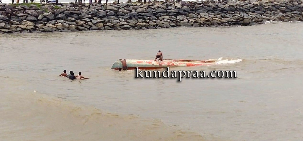 ಕೊಡೇರಿಯ ಸಾಗರಶ್ರೀ ಎಂಬ ಹೆಸರಿನ ಜೋಡಿ ದೋಣಿ ಮೀನುಗಾರಿಕೆ ಮುಗಿಸಿ ಇಂದು ಮಧ್ಯಾಹ್ನ ಹಿಂದಿರುಗುತ್ತಿದ್ದ ಸಂದರ್ಭ ವಿಪರೀತ ಗಾಳಿ, ಸಮುದ್ರದ ಅಲೆಗಳ ರಭಸಕ್ಕೆ ಬಂದರು ಪ್ರವೇಶಿಸುವ ಬದುವಿನ ಕಲ್ಲಿನ ತಡೆಗೋಡೆಗೆ ಬಡಿದು ಮಗುಚಿ ಬಿದ್ದಿದೆ. ದೋಣಿಯಲ್ಲಿ 12 ಮಂದಿ ಮೀನುಗಾರರಿದ್ದರು. ಈ ಪೈಕಿ ನಾಲ್ವರು ನಾಪತ್ತೆಯಾಗಿದ್ದು, ಶೋಧಕಾರ್ಯ ನಡೆಸಲಾಗುತ್ತಿದೆ. ದೋಣಿಯನ್ನು ಮೇಲೆ ಎಳೆಯಲಾಗುತ್ತಿದೆ. ಬದುಕುಳಿದಿರುವ ಸಾಧ್ಯತೆ ಕಡಿಮೆ ಇದೆ ಎನ್ನಲಾಗಿದೆ. ಉಳಿದ ಅಸ್ಪಸ್ಥಗೊಂಡವರನ್ನು ಆಸ್ಪತ್ರೆಗೆ ದಾಖಲಿಸಲಾಗಿತ್ತು.