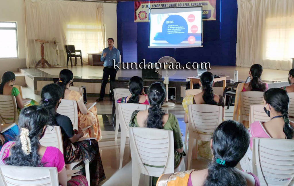 ಕುಂದಾಪುರ: ಪ್ರಸ್ತುತ ಕೋವಿಡ್ ಪರಿಸ್ಥಿತಿಯಲ್ಲಿ ಆನ್ಲೈನ್ ಶಿಕ್ಷಣದ ಮುಖಾಂತರ ವಿದ್ಯಾರ್ಥಿಗಳು ಮತ್ತು ಅಧ್ಯಾಪಕರ ನಡುವೆ ಸಂವಹನವನ್ನು ನಡೆಸುವುದು ಅತ್ಯಮೂಲ್ಯವಾಗಿರುತ್ತದೆ. ಮುಂದಿನ ದಿನಗಳಲ್ಲಿ ಶೈಕ್ಷಣಿಕ ತರಗತಿಗಳನ್ನು ನಡೆಸುವ ಸಲುವಾಗಿ ಪ್ರಾಧ್ಯಾಪಕರಿಗೆ ಪುನಶ್ಚೇತನ ಕಾರ್ಯಾಗಾರವನ್ನು ಇಲ್ಲಿನ ಡಾ| ಬಿ. ಬಿ. ಹೆಗ್ಡೆ ಪ್ರಥಮ ದರ್ಜೆ ಕಾಲೇಜಿನ ಗಣಕ ವಿಜ್ಞಾನ ವಿಭಾಗ ಮತ್ತು IQAC ಘಟಕದ ಸಂಯುಕ್ತ ಆಶ್ರಯದಲ್ಲಿ ಹಮ್ಮಿಕೊಳ್ಳಲಾಯಿತು.