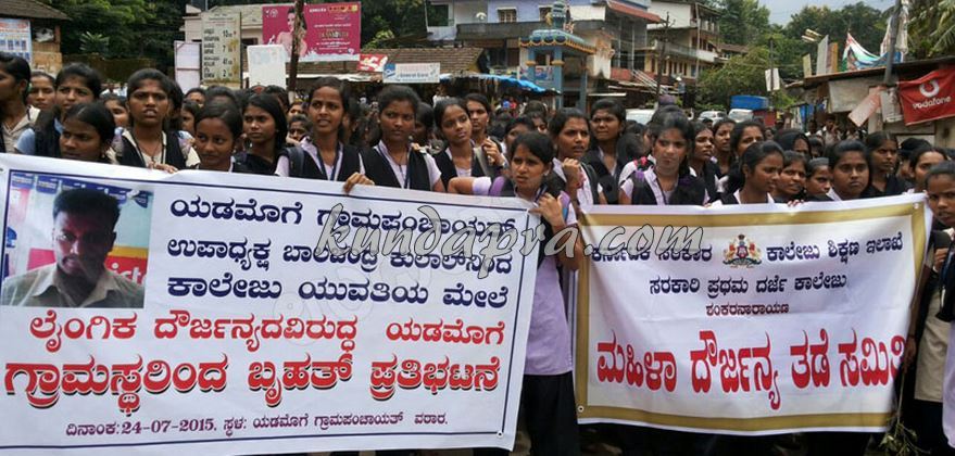 ಎಬಿವಿಪಿ ಸಂಘಟನೆ, ಬಿಜೆಪಿ ಯುವಮೋರ್ಚಾ, ರಾಜ್ಯ ಕಾರ್ಮಿಕ ಘಟಕ ಮತ್ತು ವಿವಿಧ ಸಂಘಟನೆಗಳ ಸದಸ್ಯರು ಎಡಮೊಗೆ ಪಂಚಾಯತ್ ಎದುರು ಪ್ರತಿಭಟನೆ ನಡೆಸಿ ಬಾಲಚಂದ್ರ ಕುಲಾಲ್ನ ಪಂಚಾಯತ್ ಸದಸ್ಯತ್ವ ರದ್ದು ಮಾಡಿ ಕೂಡಲೇ ಬಂಧಿಸಬೇಕೆಂದು ಆಗ್ರಹಿಸಿದರು.