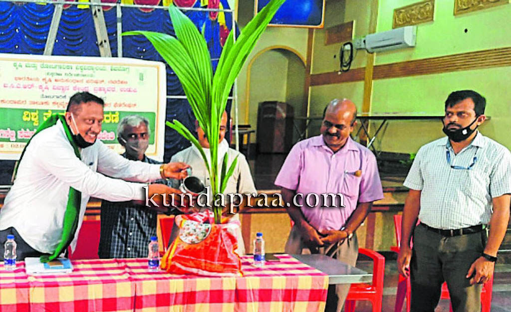 ಬ್ರಹ್ಮಾವರ ಕೃಷಿ ವಿಜ್ಞಾನ ಕೇಂದ್ರ, ಕುಂದಾಪುರ ತಾಲ್ಲೂಕು ಕಲ್ಪವೃಕ್ಷ ತೆಂಗು ಉತ್ಪಾದಕರ ಫೆಡರೇಷನ್ ಮತ್ತು ತೋಟಗಾರಿಕೆ ಇಲಾಖೆ ಸಹಯೋಗದಲ್ಲಿ ನಾಗೂರು ಒಡೆಯರಮಠ ಗೋಪಾಲಕೃಷ್ಣ ಕಲಾಮಂಟಪದಲ್ಲಿ ‘ವಿಶ್ವ ತೆಂಗು ದಿನಾಚರಣೆ’ ಅಂಗವಾಗಿ ಆಯೋಜಿಸಿದ್ದ ‘ತೆಂಗಿನ ಸಮಗ್ರ ಬೇಸಾಯ ತರಬೇತಿ ಕಾರ್ಯಕ್ರಮ’ವನ್ನು ಉದ್ಘಾಟಿಸಿ ಅವರು ಮಾತನಾಡಿದರು. ಹಾಪ್ಕಾಮ್ಸ್ ಅಧ್ಯಕ್ಷ ಸೀತಾರಾಮ ಗಾಣಿಗ ಪ್ರಾಸ್ತಾವಿಕವಾಗಿ ಮಾತನಾಡಿದರು. ವಿಶ್ವವಿದ್ಯಾಲಯದ ಸಹ ವಿಸ್ತರಣಾ ನಿರ್ದೇಶಕ ಡಾ. ಎಸ್ ಯು. ಪಾಟೀಲ್, ತೆಂಗು ಉತ್ಪಾದಕರ ಕಂಪನಿಯ ಮೂಲಕ ತೆಂಗಿನ ಮೌಲ್ಯವರ್ಧಿತ ಉತ್ಪನ್ನಗಳನ್ನು ಬ್ರಾಂಡ್ ಮಾಡಿ ಮಾರುವುದರಿಂದ ಅಧಿಕ ಲಾಭ ಪಡೆಯಬಹುದು’ ಎಂದರು.