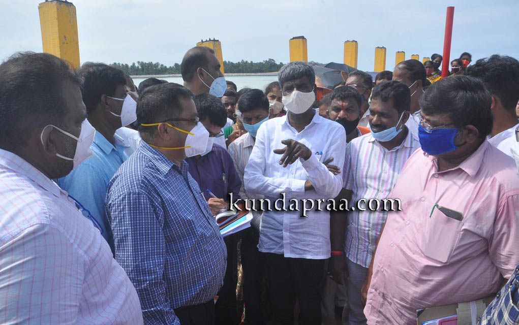 ಗಂಗೊಳ್ಳಿ ಮೀನುಗಾರಿಕಾ ಬಂದರಿನಲ್ಲಿ ಕುಸಿದು ಬಿದ್ದ ಜೆಟ್ಟಿಯನ್ನು ಮತ್ತು ಬ್ರೇಕ್ ವಾಟರ್ ತಡೆಗೋಡೆಯನ್ನು ಪರಿಶೀಲಿಸಿದ ಸಚಿವರು, ಜೆಟ್ಟಿ ಪುನರ್ ನಿರ್ಮಾಣ ಕಾಮಗಾರಿ ಬಗ್ಗೆ ಕೈಗೊಂಡ ಕ್ರಮಗಳ ಕುರಿತು ಅಧಿಕಾರಿಗಳಿಂದ ಮಾಹಿತಿ ಪಡೆದುಕೊಂಡರು. ಸ್ಥಳೀಯ ಮೀನುಗಾರ ಮುಖಂಡರ ಸಲಹೆ, ಸೂಚನೆ, ಅಭಿಪ್ರಾಯವನ್ನು ಆಲಿಸಿದರು. 102 ಕೋಟಿ ರೂ. ವೆಚ್ಚದ ಬ್ರೇಕ್ ವಾಟರ್‌ನ ತಡೆಗೋಡೆ ಕುಸಿಯುತ್ತಿರುವುದರ ಬಗ್ಗೆ ತೀವ್ರ ಅಸಮಾಧಾನ ವ್ಯಕ್ತಪಡಿಸಿದ ಸಚಿವ ಕೋಟ ಶ್ರೀನಿವಾಸ ಪೂಜಾರಿ ಆದಷ್ಟು ಶೀಘ್ರ ತಡೆಗೋಡೆ ದುರಸ್ಥಿಗೆ ಕ್ರಮಕೈಗೊಳ್ಳುವಂತೆ ಇಲಾಖೆಯ ಅಧಿಕಾರಿಗಳಿಗೆ ಸೂಚನೆ ನೀಡಿದರು.