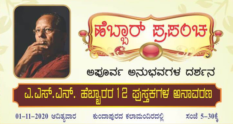 ಕುಂದಾಪುರ: ಹಿರಿಯ ವಕೀಲ, ವಾಗ್ಮಿ, ಲೇಖಕ ಎ.ಎಸ್.ಎನ್. ಹೆಬ್ಬಾರ್ ಅವರ 12 ಪುಸ್ತಕಗಳ ಗುಚ್ಛ ನ.1ರ ಕನ್ನಡ ರಾಜ್ಯೋತ್ಸವದಂದು ಕುಂದಾಪುರ ಕಲಾಮಂದಿರದಲ್ಲಿ ಬಿಡುಗಡೆಗೊಳ್ಳಲಿದೆ. ಅಂದು ಸಂಜೆ 5:30ಕ್ಕೆ ವಿನೂತನ ರಾಜ್ಯೋತ್ಸವ ಕಾರ್ಯಕ್ರಮವಾಗಿ ಕಲಾಕ್ಷೇತ್ರ-ಕುಂದಾಪುರ ಈ ಅಪೂರ್ವ ಸಮಾರಂಭವನ್ನು ಕೊರೊನಾ ಕಟ್ಟುಪಾಡಿನ ಚೌಕಟ್ಟಿನಲ್ಲಿ ನಡೆಸಲು ಸಜ್ಜಾಗಿದೆ.