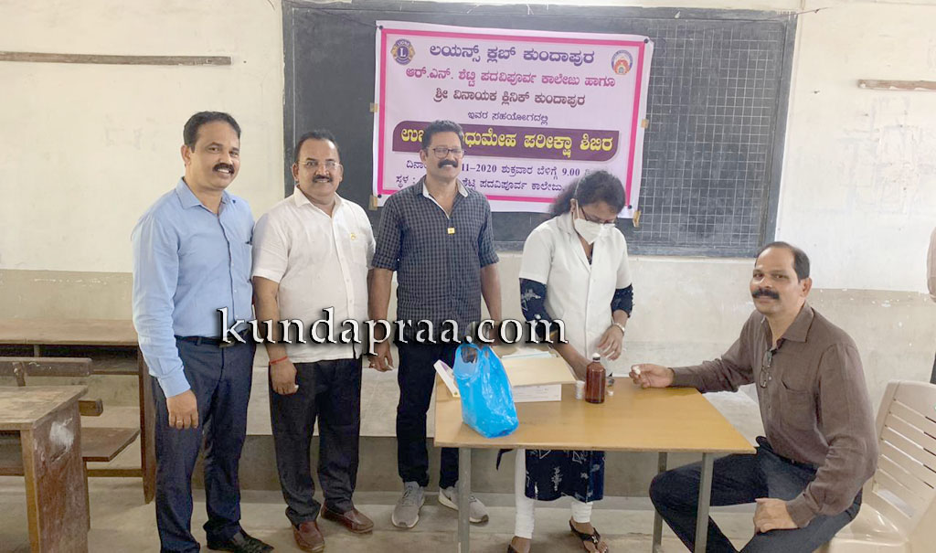 ಕುಂದಾಪುರ: ಲಯನ್ಸ್ ಕ್ಲಬ್ ಕುಂದಾಪುರ, ಆರ್. ಎನ್. ಶೆಟ್ಟಿ ಪದವಿ ಪೂರ್ವ ಕಾಲೇಜು ಹಾಗೂ ಶ್ರೀ ವಿನಾಯಕ ಕ್ಲಿನಿಕ್ ಇವರ ಸಹಯೋಗದಲ್ಲಿ ಉಚಿತ ಮಧುಮೇಹ ಪರೀಕ್ಷಾ ಶಿಬಿರವನ್ನು ಹಮ್ಮಿಕೊಳ್ಳಲಾಯಿತು.