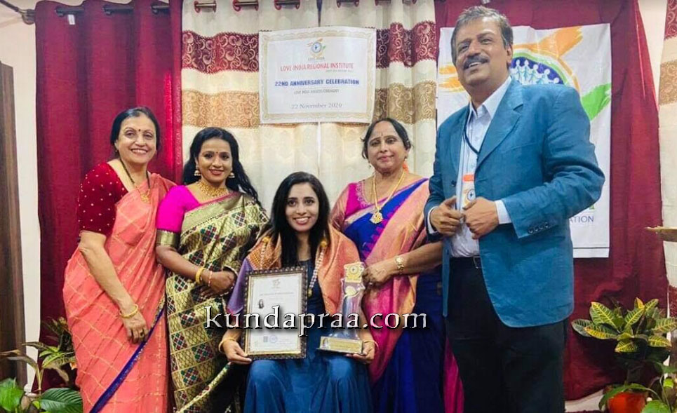 ಕುಂದಾಪುರ: ಟಾಕ್ ಟು ಬ್ಯಾಂಕ್ ಡಾಟ್ ಕಾಂನ ಸಹ ಸಂಸ್ಥಾಪಕಿ ಯೋಗಿತಾ ಬಾಲಿ ಅವರು ಬೆಂಗಳೂರಿನ ಲವ್ ಇಂಡಿಯಾ ರೀಜನಲ್ ಇನ್ಸಿಟ್ಯೂಟ್ ಕೊಡಮಾಡಿದ 2020ನೇ ಸಾಲಿನ ಲೀಡರ್ಶಿಪ್ & ವುಮನ್ ಎಂಪವರ್ಮೆಂಟ್ ಪ್ರಶಸ್ತಿಗೆ ಭಾಜನರಾಗಿದ್ದು, ಬೆಂಗಳೂರಿನಲ್ಲಿ ನಡೆದ ಸಮಾರಂಭದಲ್ಲಿ ಅವರು ಪ್ರಶಸ್ತಿ ಸ್ವೀಕರಿಸಿದರು.