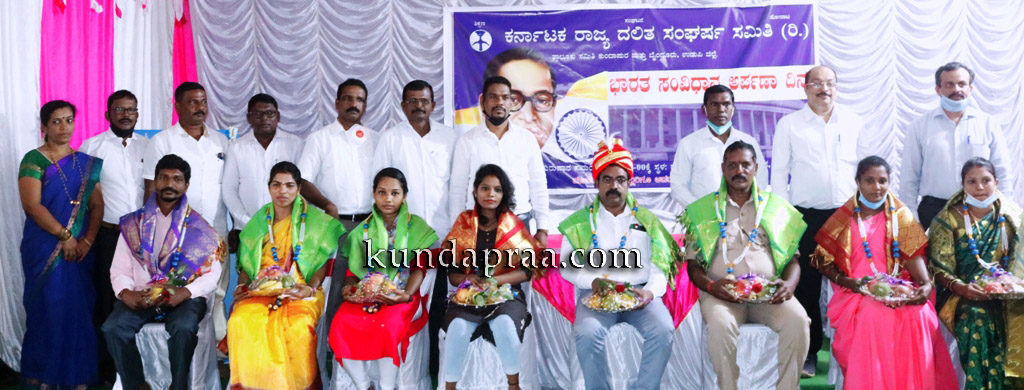ಕುಂದಾಪುರ: ಕರ್ನಾಟಕ ರಾಜ್ಯ ದಲಿತ ಸಂಘರ್ಷ ಸಮಿತಿ ಕುಂದಾಪುರ ತಾಲೂಕು ಸಮಿತಿ ಮತ್ತು ಕುಂದಾಪುರ ಬೈಂದೂರು ಮಹಿಳಾ ಸಮಿತಿ ಆಶ್ರಯದಲ್ಲಿ ಇಲ್ಲಿನ ಡಾ.ಬಿ.ಆರ್.ಅಂಬೇಡ್ಕರ್ ಭವದಲ್ಲಿ ನಡೆದ ಭಾರತ ಸಂವಿಧಾನ ಅರ್ಪಣಾ ದಿನ ಉದ್ಘಾಟನೆ ನಡೆಯಿತು.