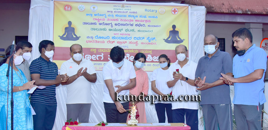 ಪ್ರಿಯಾದರ್ಶಿನಿ ಪ್ರಾರ್ಥನೆ ಹಾಡಿದರು. ರೋಟರಿ ಕುಂದಾಪುರ ರಿವರ್ ಸೈಡ್ ಅಧ್ಯಕ್ಷ ಕೌಶಿಕ್ ಯಡಿಯಾಳ್ ಸ್ವಾಗತಿಸಿದರು. ತಾಲೂಕು ಆರೋಗ್ಯ ಅಧಿಕಾರಿ ಡಾ. ನಾಗಭೂಷಣ ಉಡುಪ ಪ್ರಾಸ್ತಾವಿಕ ಮಾತುಗಳನ್ನಾಡಿದರು. ಆಯುಷ್ ವೈದ್ಯಾಧಿಕಾರಿ ಡಾ. ವೀಣಾ ಕಾರಂತ್ ಯೋಗ ತರಬೇತುದಾರರನ್ನು ಪರಿಚಯಿಸಿ ಕಾರ್ಯಕ್ರಮವನ್ನು ನಿರೂಪಿಸಿದರು. ತಾಲೂಕು ಆಯುಷ್ ಆಸ್ಪತ್ರೆಯ ಹಿರಿಯ ವೈದ್ಯಾಧಿಕಾರಿ ಡಾ. ಅಶೋಕ್ ಹೆಚ್. ವಂದಿಸಿದರು.