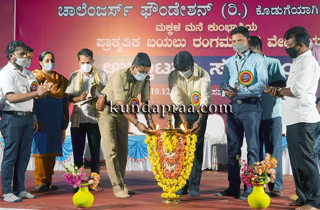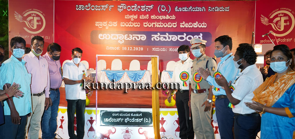 ಕುಂದಾಪುರ: ಕುಂಭಾಶಿಯ ಕೊರಗ ಕಾಲನಿ ಸಮೀಪದ ‘ಮಕ್ಕಳ ಮನೆ’ಗಾಗಿ ಚಾಲೆಂಜರ್ಸ್ ಫೌಂಡೇಶನ್ (ರಿ) ಕೊಡುಗೆಯಾಗಿ ನೀಡಿದ ಪ್ರಾಕೃತಿಕ ಬಯಲು ರಂಗಮಂದಿರ ವೇದಿಕೆಯನ್ನು ಉಡುಪಿ ಜಿಲ್ಲಾಧಿಕಾರಿ ಜಿ. ಜಗದೀಶ್ ಗುರುವಾರ ಸಂಜೆ ಉದ್ಘಾಟಿಸಿದರು.