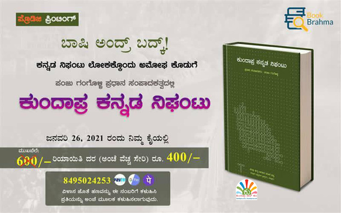 ಪ್ರೊಡಿಜಿ ಪ್ರಿಂಟಿಂಗ್ ಪ್ರಕಟಿಸುತ್ತಿರುವ ಪುಸ್ತಕದ ಪ್ರಕಟಣಾಪೂರ್ವ ಮಾರಾಟವನ್ನು ಎಕ್ಸ್ಕ್ಲೂಸಿವ್ ಆಗಿ “ಬುಕ್ ಬ್ರಹ್ಮ”ತಂಡ ನಿಭಾಯಿಸಲಿದ್ದು, ಅದು ಪ್ರಕಟಣಾಪೂರ್ವ ಖರೀದಿಗೆ ಸಿಂಗಲ್ ಪಾಯಿಂಟ್ ವಿಂಡೊ ಆಗಿ ಕಾರ್ಯ ನಿರ್ವಹಿಸಲಿದೆ. ಪುಸ್ತಕ ಖರೀದಿಸಲು ಆಸಕ್ತರು ಅವರ ದೂರವಾಣಿ ಸಂಖ್ಯೆ: 8495024253 ಗೆ ಪೇಟಿಎಂ/ಗೂಗಲ್ ಪೇ/ಫೋನ್ ಪೇ ಮೂಲಕ ಪಾವತಿ ಮಾಡಿ, ಪಾವತಿ ಮಾಡಿದ ವಿವರ ಮತ್ತು ವಿಳಾಸವನ್ನು ಕಳುಹಿಸಿಕೊಟ್ಟರೆ, ಅವರು ಜನವರಿ 26ಕ್ಕೆ ಪುಸ್ತಕ ಬಿಡುಗಡೆಯ ದಿನದಂದೇ ಪುಸ್ತಕವನ್ನು ನಿಮಗೆ ತಲುಪಿಸಲು ವ್ಯವಸ್ಥೆ ಮಾಡುತ್ತಾರೆ.