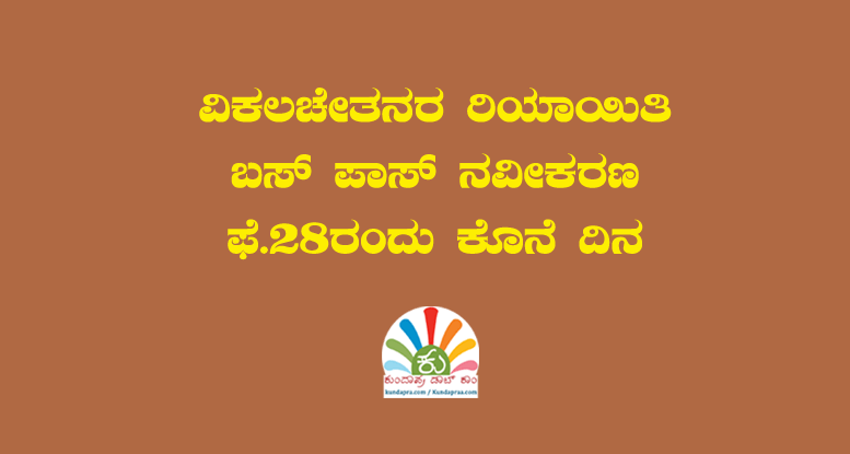 ವಿಕಲಚೇತನರ ರಿಯಾಯಿತಿ ಬಸ್ಸು ಪಾಸುಗಳನ್ನು ಫಲಾನುಭವಿಗಳು ನವೀಕರಿಸಿಕೊಳ್ಳಲು ಅನುಕೂಲವಾಗುವಂತೆ ಸಾಕಷ್ಟು ಕಾಲಮಿತಿ ನೀಡುವ ಉದ್ದೇಶದಿಂದ 2020 ನೇ ಸಾಲಿನಲ್ಲಿ ವಿತರಿಸಿದ ಪಾಸುಗಳನ್ನು ಫೆಬ್ರವರಿ 28 ರವರೆಗೆ ಮಾನ್ಯ ಮಾಡಲಾಗುವುದು.