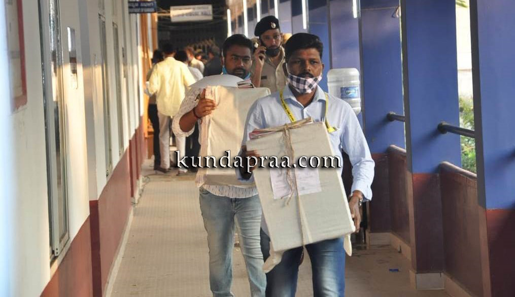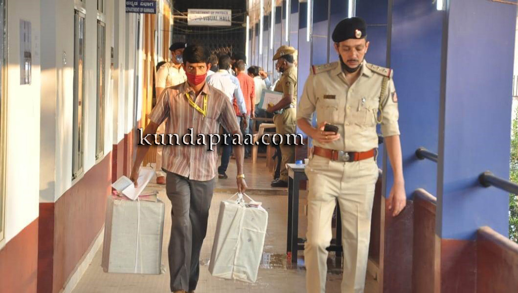 ಇಂದು ಬೆಳಿಗ್ಗೆ 7 ಗಂಟೆಗೆ ಕುಂದಾಪುರ ಸಹಾಯಕ ಆಯುಕ್ತ ರಾಜು ಕೆ ಉಪಸ್ಥಿತಿಯಲ್ಲಿ ಪೊಲೀಸ್ ಬಿಗು ಬಂದೋಬಸ್ತ್ ಮೂಲಕ ಭದ್ರತಾ ಕೊಠಡಿಯ ಬಾಗಿಲು ತೆರೆದು ಮತ ಎಣಿಕೆ ಕಾರ್ಯ ನಡೆಯುವ ವಿವಿಧ ಕೊಠಡಿಗಳಿಗೆ ಮತ ಪೆಟ್ಟಿಗೆಯನ್ನು ಸಾಗಿಸಲಾಗಿದೆ. ಇದೀಗ ಮತ ಎಣಿಕೆ ಕಾರ್ಯ ಆರಂಭಗೊಂಡಿದ್ದು, ಕುಂದಾಪುರ ತಾಲೂಕಿನ 530 ಅಭ್ಯರ್ಥಿಗಳು ಹಾಗೂ ಬೈಂದೂರು ತಾಲೂಕಿನ 252 ಅಭ್ಯಥರ್ಿಗಳ ಭವಿಷ್ಯ ಕೆಲವೇ ಕ್ಷಣಗಳಲ್ಲಿ ಹೊರಬೀಳಲಿದೆ.
