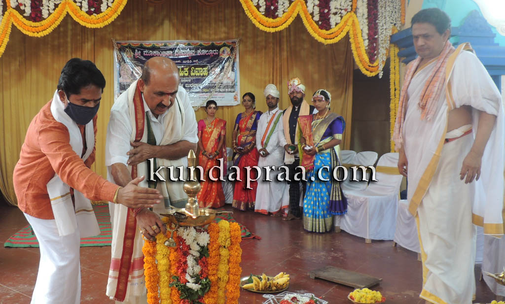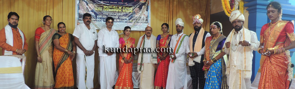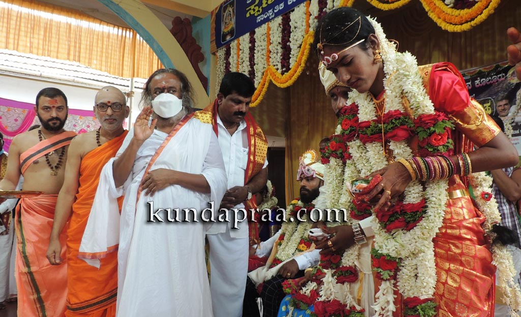 ಶಾಸಕರು ನವದಂಪತಿಗಳಿಗೆ ದೇವಳದ ವತಿಯಿಂದ ಕೊಡಮಾಡುವ ಪಂಚೆ, ಶಲ್ಯ ವರನಿಗೆ ಹಾಗೂ ವಧುವಿಗೆ 6 ಗ್ರಾಂ ಚಿನ್ನದ ಗುಂಡು ಇರುವ ಕರಿಮಣಿಸರವನ್ನು ಹಸ್ತಾಂತರಿಸಿದರು. ಒಟ್ಟು ನಾಲ್ಕು ಜೋಡಿಹಕ್ಕಿಗಳು ಕೊಲ್ಲೂರು ಶ್ರೀ ಮೂಕಾಂಬಿಕಾ ಸಾನಿಧ್ಯದಲ್ಲಿ ಸತಿಪತಿಗಳಾದರು.