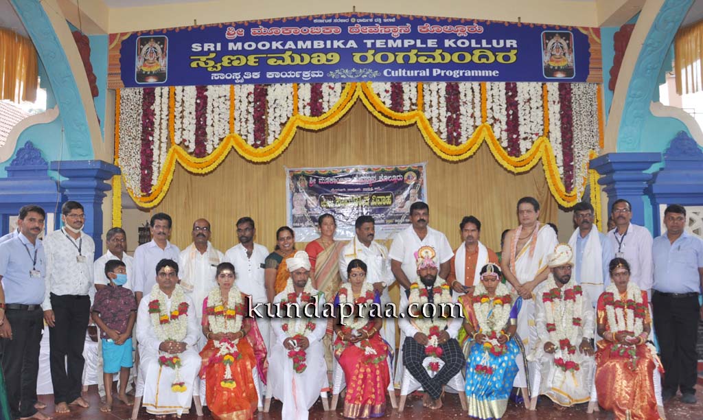 ಕೊಲ್ಲೂರು: ಕೊಲ್ಲೂರು ಶ್ರೀ ಮೂಕಾಂಬಿಕಾ ದೇವಳದ ಸ್ವರ್ಣಮುಖಿ ರಂಗಮಂಟಪದಲ್ಲಿ ಸಪ್ತಪದಿ ಉಚಿತ ಸರಳ ಸಾಮೂಹಿಕ ವಿವಾಹ ಸಮಾರಂಭ ಜರುಗಿತು.