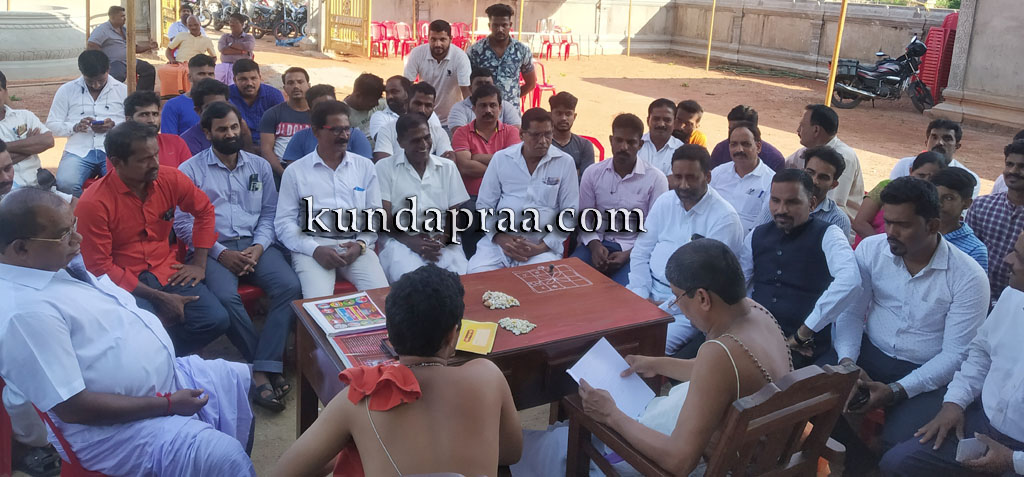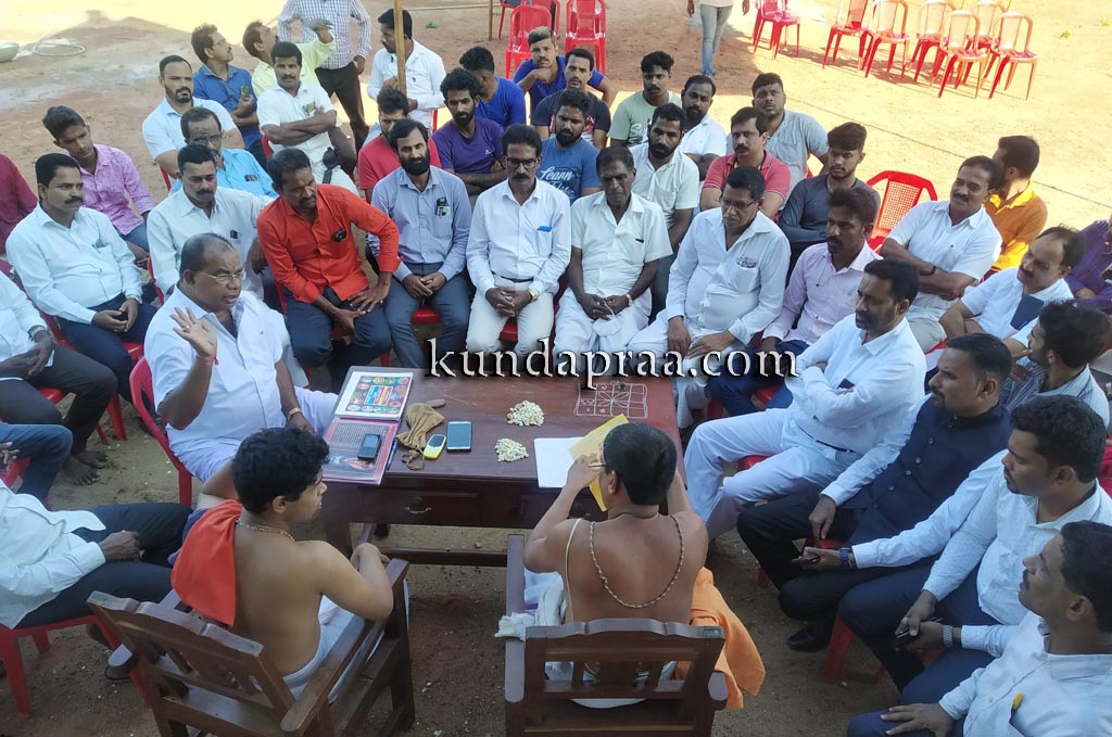 ಬೈಂದೂರು: ಯಡ್ತರೆ ಗ್ರಾಮದ ನಾಕಟ್ಟೆಯಲ್ಲಿ ಜೀರ್ಣೋದ್ಧಾರಗೊಂಡು ಲೋಕಾರ್ಪಣೆಗಾಗಿ ಸಿದ್ಧಗೊಂಡ ಕೋಟಿ ಚೆನ್ನಯ್ಯ, ಪಂಜುರ್ಲಿ ಗರಡಿಯ ಮುಹೂರ್ತ ನಿಗದಿಯ ಪೂರ್ವಭಾವಿ ಸಭೆ ಗುರುವಾರ ನಡೆಯಿತು.