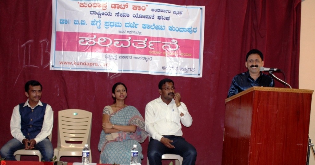 ಅವರು ಕುಂದಾಪ್ರ ಡಾಟ್ ಕಾಂ ಅಂತರ್ಜಾಲ ಪತ್ರಿಕೆಯು ಡಾ| ಬಿ. ಬಿ. ಹೆಗ್ಡೆ ಪ್ರಥಮ ದರ್ಜೆ ಕಾಲೇಜಿನ ರಾಷ್ಟ್ರೀಯ ಸೇವಾ ಯೋಜನೆ ಘಟಕದ ಸಹಕಾರದೊಂದಿಗೆ ಹಮ್ಮಿಕೊಂಡಿದ್ದ ’ಪರಿವರ್ತನೆ’ ವಿಶೇಷ ಉಪನ್ಯಾಸ ಕಾರ್ಯಕ್ರಮದಲ್ಲಿ ವಿದಾರ್ಥಿಗಳನ್ನುದ್ದೇಶಿಸಿ ಮಾತನಾಡುತ್ತಿದ್ದರು.