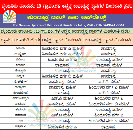 ಬೈಂದೂರು ತಾಲೂಕಿನ 15 ಪಂಚಾಯತಿಗಳಿಗೆ ಆಯ್ಕೆಯಾದವರ ವಿವರ ಈ ಕೆಳಗಿನಂತಿದೆ