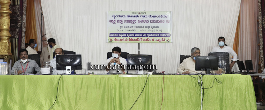 ತಾಲೂಕು ವ್ಯಾಪ್ತಿಯ ಎಲ್ಲಾ ಪಂಚಾಯತ್ ಗಳ ನೂತನ ಸದಸ್ಯರು ಆಯ್ಕೆ ಪ್ರಕ್ರಿಯೆ ಸಂದರ್ಭ ಭಾಗವಹಿಸಿದರು. ಅಪರ ಜಿಲ್ಲಾಧಿಕಾರಿ ಸದಾಶಿವ ಪ್ರಭು, ಬೈಂದೂರು ತಹಶೀಲ್ದಾರ್ ಕಿರಣ್ ಗೋರಯ್ಯ ಹಾಗೂ ಜಿಲ್ಲಾ ತಂತ್ರಜ್ಞಾನ ಇಲಾಖೆಯ ತಾಂತ್ರಿಕ ನಿರ್ದೇಶಕ ಮಂಜುನಾಥ ಹಾಗೂ ಕಂದಾಯ ಇಲಾಖೆಯ ಅಧಿಕಾರಿಗಳು ಉಪಸ್ಥಿತರಿದ್ದರು.