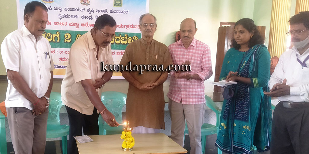 ಬೈಂದೂರು: ಕುಂದಾಪುರ ತಾಲೂಕು ಕೃಷಿ ಇಲಾಖೆ ಮತ್ತು ಬೈಂದೂರು ರೈತ ಸಂಪರ್ಕ ಕೇಂದ್ರದ ಆಶ್ರಯದಲ್ಲಿ 2020-21ನೇ ಸಾಲಿನ ಮಣ್ಣು ಆರೋಗ್ಯ ಚೀಟಿ ಕಾರ್ಯಕ್ರಮದಡಿ ಸೋಮವಾರ ಆರಂಭವಾದ ಎರಡು ದಿನಗಳ ರೈತ ತರಬೇತಿ ಕಾರ್ಯಕ್ರಮ ಇಲ್ಲಿನ ಮರವಂತೆ ಸಾಧನಾ ಸಮುದಾಯ ಭವನದ ವಿ. ಕೆ. ಕಾಮತ್ ಸಭಾಗೃಹದಲ್ಲಿ ನಡೆಯಿತು.