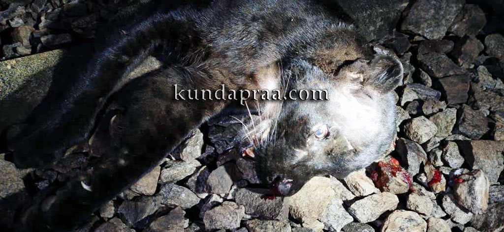 ಕುಂದಾಪುರ: ಇಲ್ಲಿನ ಬಡಾಕೆರೆ ರೈಲ್ವೆ ಸೇತುವೆ ಮೇಲೆ ಮಂಗಳವಾರ ನಸುಕಿನ ಸಮಯ ಅಪರೂಪದ ಕರಿ ಚಿರತೆಗೆ ರೈಲು ಡಿಕ್ಕಿ ಹೊಡೆದ ಪರಿಣಾಮ ಅಸುನೀಗಿದೆ.