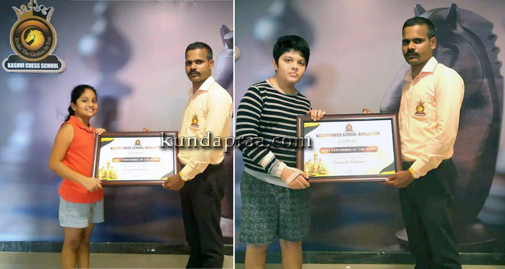 ಕುಂದಾಪುರ: ಇಲ್ಲಿನ ಕಶ್ವಿ ಚೆಸ್ ಸ್ಕೂಲ್‌ನಲ್ಲಿ ಸಾಧಕರಿಗೆ ಶನಿವಾರ ಉತ್ತಮ ಸಾಧಕ ಪ್ರಶಸ್ತಿ ನೀಡಿ ಗೌರವಿಸಲಾಯಿತು.