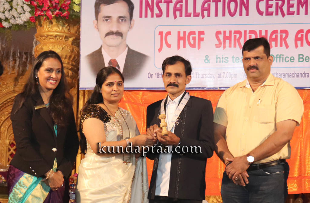 ಜೆಸಿಐ ಬೈಂದೂರು ಸಿಟಿಯ ನಿರ್ಗಮಿತ ಅಧ್ಯಕ್ಷೆ ಪ್ರಿಯದರ್ಶಿನಿ ಕಮಲೇಶ್ ಅವರು ನೂತನ ಅಧ್ಯಕ್ಷ ಶ್ರೀಧರ ಆಚಾರ್ಯ ಅವರಿಗೆ ಜೆಸಿಐ ಪದಕ, ದಂಡವನ್ನು ಹಸ್ತಾಂತರಿಸಿದರು.