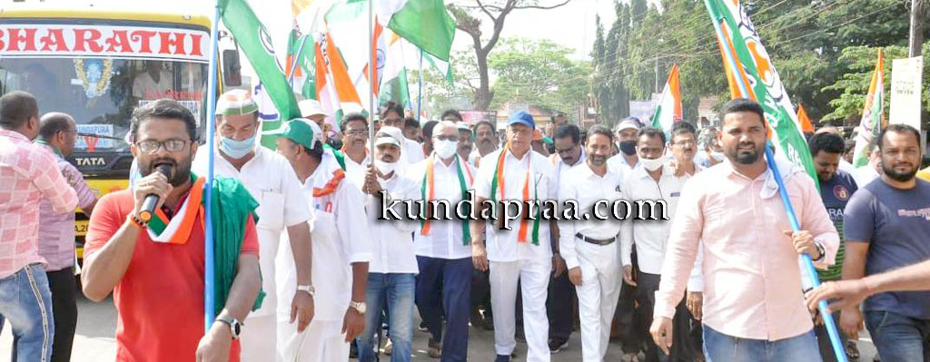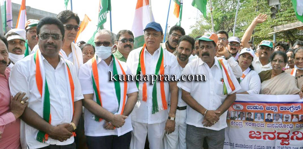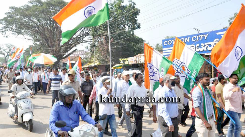ಕೇಂದ್ರ ಸರ್ಕಾರದ ಜನ ವಿರೋಧಿ ನೀತಿ ವಿರೋಧಿಸಿ ಉಡುಪಿ ಜಿಲ್ಲಾ ಕಾಂಗ್ರೆಸ್ ಸಮಿತಿ ವತಿಯಿಂದ ಹೆಜಮಾಡಿಯಿಂದ ಬೈಂದೂರುವರೆಗೆ ಸಾಗುವ ಜನಧ್ವನಿ ಪಾದಯಾತ್ರೆ ಗುರುವಾರ ಸಂಜೆ ಕುಂದಾಪುರ ತಲುಪಿದ ಸಂದರ್ಭದಲ್ಲಿ ಅವರು ಶಾಸ್ತ್ರಿ ಸರ್ಕಲ್ ಬಳಿ ನಡೆದ ಸಭೆಯಲ್ಲಿ ಮಾತನಾಡಿದರು.