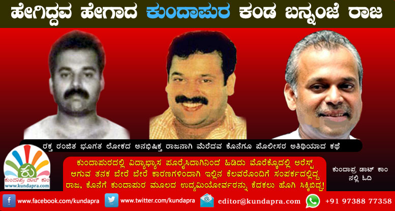 ಕುಂದಾಪುರ: ಇಂದಿಗೆ ಬರೋಬ್ಬರೀ 33 ವರ್ಷಗಳ ಕೆಳಗೆ ಅಮಾಯಕ ವಿದ್ಯಾರ್ಥಿಯಾಗಿ, ಕುಂದಾಪುರದಲ್ಲಿಯೇ ಶಾಲೆಗೆ ಹೋಗಿ ಹೊತ್ತಲ್ಲದ ಹೊತ್ತಿನಲ್ಲಿ ಕುಂದಾಪುರದ ಅಂಗಳವನ್ನು ದಾಟಿದ ಬಾಲಕನೋರ್ವ ಕಾಲನ ಬರ್ಬರ ಹಿತ್ತಲಿನಲ್ಲಿ ಹಜ್ಜೆಯಿಕ್ಕಿ ರಕ್ತ ರಂಜಿತ ಭೂಗತ ಲೋಕದ ಅನಭಿಷಿಕ್ತ ರಾಜನಾಗಿ ಎರಡೂ ಕೈಗಳಿಗೆ ಪಾತಕ ಪ್ರಪಂಚದ ನೆತ್ತರನ್ನು ಅಂಟಿಸಿ ಕೊಂಡು ಇದೀಗ ಪೋಲಿಸರ ಬಂಧಿಯಾಗಿ ಗುರುತು ಸಿಗದಂತೇ ಬದಲಾಗಿ ಹೋಗಿದ್ದಾನೆ. ಒಂದು ಕಾಲದ ಅಮಾಯಕ ಬಾಲಕ, ನಂತರದ ಸುಂದರ ಸುರದ್ರೂಪಿ ಯುವಕ ಇವನೇನಾ ಅಂತಾ ಕುಂದಾಪುರ ಮಾತನಾಡಿಕೊಳ್ಳುತ್ತಿದೆ. ಬನ್ನಂಜೆ ರಾಜ ಗುರತೇ ಸಿಗದಂತೆ ಬದಲಾಗಿದ್ದಾನೆ. ಮೊರಕ್ಕೋದಲ್ಲಿ ಬೆಂಗಳೂರು ಪೊಲೀಸರಿಂದ ಬಂಧನಕ್ಕೊಳಗಾಗಿ ಶುಕ್ರವಾರ ಬೆಳಗಾವಿಗೆ ಕರೆತರಲಾದ ಬನ್ನಂಜೆ ರಾಜ(47)ನನ್ನು ಶನಿವಾರ ಉಡುಪಿಗೆ ಕರೆತಂದು ಪೊಲೀಸರು ತೀವ್ರ ವಿಚಾರಣೆ ನಡೆಸುತ್ತಿದ್ದಾರೆ.