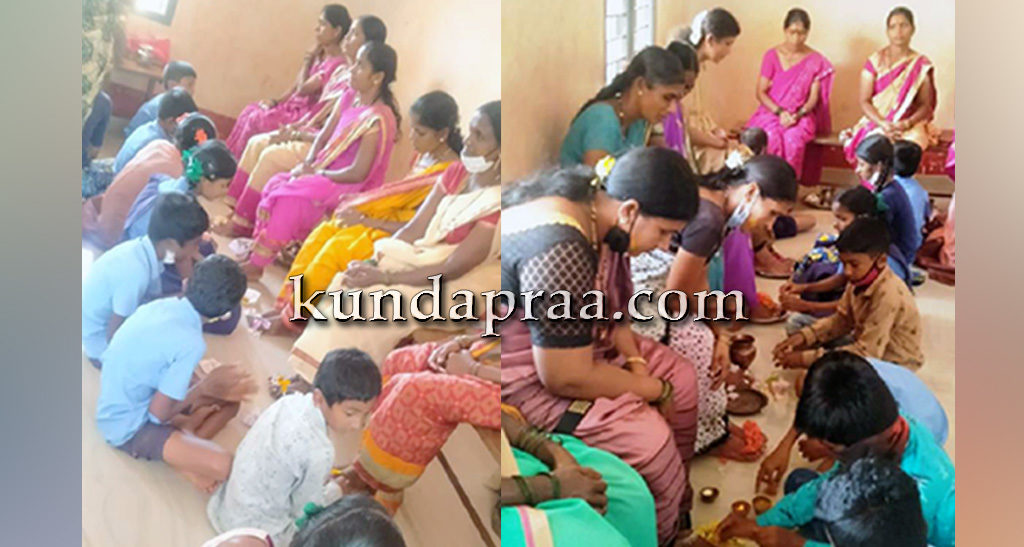 ಬೈಂದೂರು: ವಿಶ್ವ ಮಹಿಳಾ ದಿನಾಚರಣೆಯ ಅಂಗವಾಗಿ ಹೇರಂಜಾಲು ಸರಕಾರಿ ಹಿರಿಯ ಪ್ರಾಥಮಿಕ ಶಾಲೆಯ 6 ಮತ್ತು 7ನೇ ತರಗತಿಯ ವಿದ್ಯಾರ್ಥಿಗಳು ತಮ್ಮ ತಾಯಂದಿರ ಪಾದ ಪೂಜೆ ನೆರವೇರಿಸುವ ಮೂಲಕ ವಿಶಿಷ್ಠವಾಗಿ ಆಚರಿಸಲಾಯಿತು.