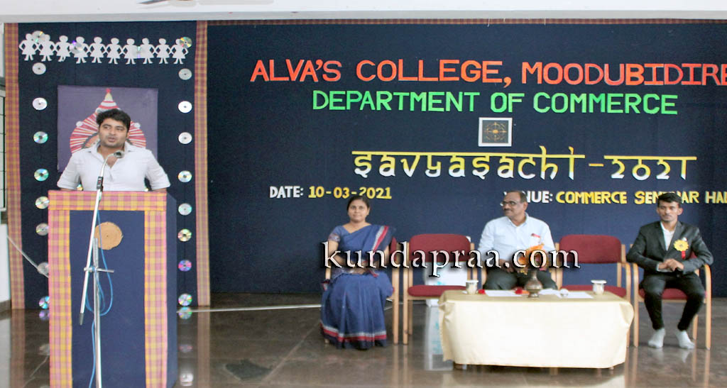 ಅವರು ಆಳ್ವಾಸ್ ಕಾಲೇಜಿನ ವಾಣಿಜ್ಯ ವಿಭಾಗದ ವತಿಯಿಂದ ಆಯೋಜಿಸಲಾದ ‘ಸವ್ಯಸಾಚಿ-2021’ ರಸಪ್ರಶ್ನೆ ಸ್ಪರ್ಧೆಯನ್ನು ಉದ್ಘಾಟಿಸಿ ಮಾತನಾಡಿದರು.