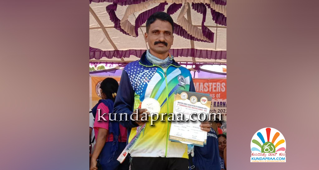 ಕುಂದಾಪುರ: ಬೆಂಗಳೂರು ವಿದ್ಯಾನಗರದಲ್ಲಿ ಮಾ.13, 14ರಂದು ನಡೆದ 2ನೇ ರಾಜ್ಯ ಮಟ್ಟದ ಮಾಸ್ಟರ್ಸ್ಸ್ಪೋಟ್ಸ್ 2021 ಕ್ರೀಡಾಕೂಟದಲ್ಲಿ ಉಡುಪಿ ಜಿಲ್ಲಾ ಪೋಲಿಸ್ ಇಲಾಖೆಯ ಸಿಬ್ಬಂದಿ ಬಿಜೂರು ಶಂಕರ ಪೂಜಾರಿ ಕಾಡಿನತಾರು ರಾಷ್ಟ್ರಮಟ್ಟಕ್ಕೆ ಆಯ್ಕೆಯಾಗಿದ್ದಾರೆ.