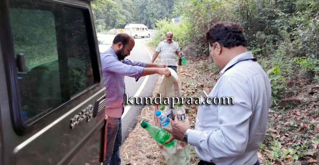 ಅಪರ ಜಿಲ್ಲಾಧಿಕಾರಿ ಸದಾಶಿವ ಪ್ರಭು ಅವರೊಂದಿಗೆ ಸೋಮೇಶ್ವರದಿಂದ ಆಗುಂಬೆ ಕಡೆಗೆ ಬೆಳಗಿನ ವಾಯು ವಿಹಾರ ಹೊರಟ ಅಧಿಕಾರಿಗಳಾದ ಕುಂದಾಪುರ ಉಪ ವಿಭಾಗಾಧಿಕಾರಿ ರಾಜು, ಕೃಷಿ ಇಲಾಖೆಯ ಜಂಟಿ ನಿರ್ದೇಶಕ ಕೆಂಪೇಗೌಡ, ಉಪ ನಿರ್ದೇಶಕ ಚಂದ್ರಶೇಖರ್ ನಾಯಕ್, ಭೂ ದಾಖಲೆಗಳ ಉಪ ನಿರ್ದೇಶಕ ರವೀಂದ್ರ, ಹೆಬ್ರಿ ತಹಸೀಲ್ದಾರ್ ಪುರಂದರ ಅವರು , ರಸ್ತೆಯ ಎರಡೂ ಬದಿಯಲ್ಲಿ ಬಿದ್ದಿದ್ದ ಪ್ಲಾಸ್ಟಿಕ್ ಬಾಟಲಿಗಳು , ಗಾಜಿನ ಬಾಟಲಿಗಳು , ಪ್ಲಾಸ್ಟಿಕ್ ಕವರ್ ಸೇರಿದಂತೆ ಮತ್ತಿತರ ಕಸವನ್ನು ಕಂಡು ಅದನ್ನು ಸ್ವಚ್ಛಗೊಳಿಸಲು ನಿರ್ಧರಿಸಿ, ಆಗುಂಬೆ ಘಾಟ್ ನ 14 ನೇ ತಿರುವಿನಲ್ಲಿ ಸುಮಾರು 200 ಮೀ ವರೆಗಿನ ರಸ್ತೆಯಲ್ಲಿ, ಪ್ರವಾಸಿಗರು ಮತ್ತು ಸಾರ್ವಜನಿಕರು ಎಸೆದಿದ್ದ 5ಚೀಲಕ್ಕೂ ಹೆಚ್ಚಿನ ಕಸವನ್ನು ಸಂಗ್ರಹಿಸಿ ಸೂಕ್ತ ರೀತಿಯಲ್ಲಿ ವಿಲೇವಾರಿ ಮಾಡುವುದರ ಮೂಲಕ ಆಗುಂಭೆ ಘಾಟ್ ನಲ್ಲಿ ಪರಿಸರ ಸ್ವಚ್ಛತೆಗೆ ಕಾರಣರಾದರು.