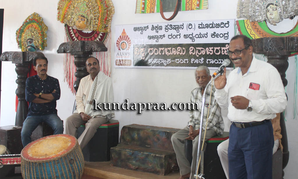 ಮೂಡುಬಿದಿರೆ: ಆಳ್ವಾಸ್ ಕಾಲೇಜಿನ ರಂಗ ಅಧ್ಯಯನ ಕೇಂದ್ರದ ವತಿಯಿಂದ ವಿಶ್ವ ರಂಗಭೂಮಿ ದಿನದ ಅಂಗವಾಗಿ “ಉಪನ್ಯಾಸ – ರಂಗ ಗೀತೆ ಗಾಯನ” ಕಾರ್ಯಕ್ರಮವನ್ನು ಆಯೋಜಿಸಲಾಯಿತು.