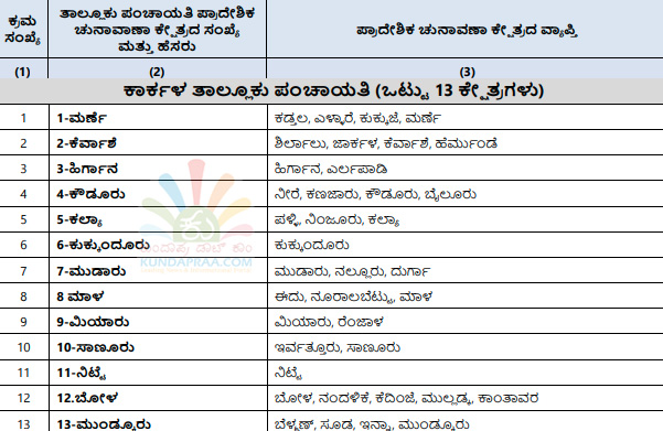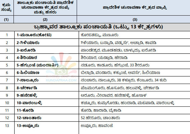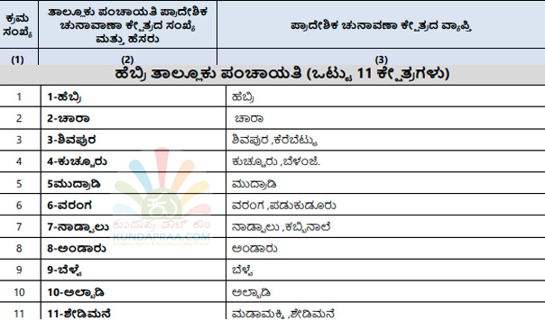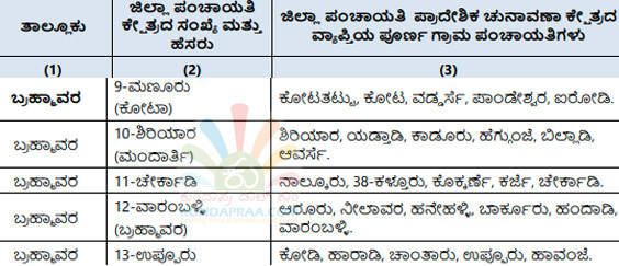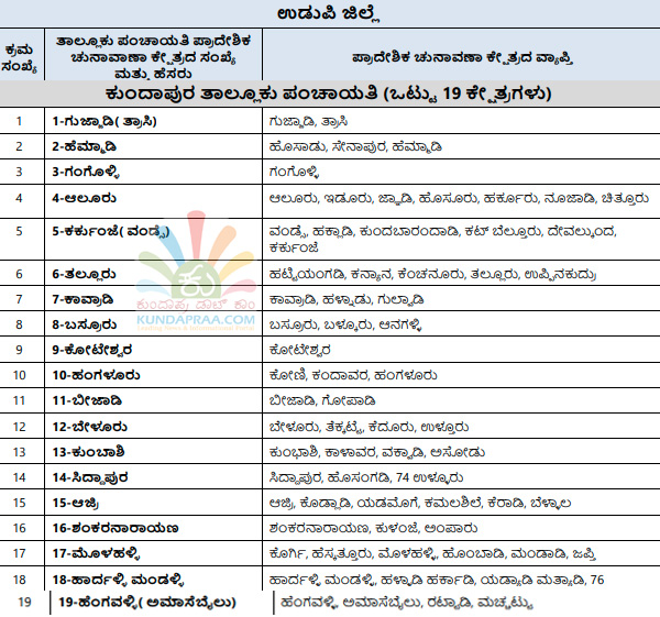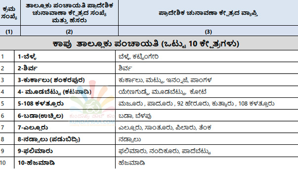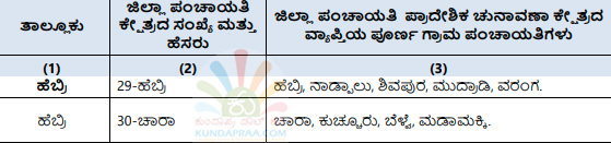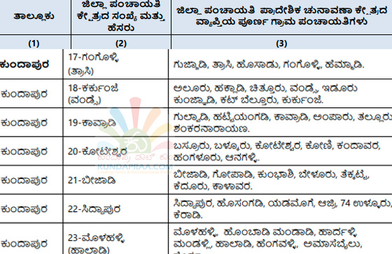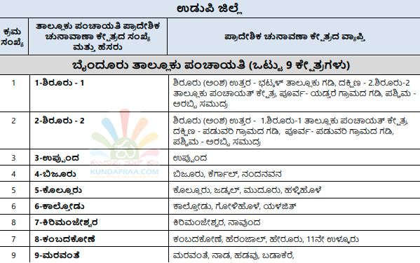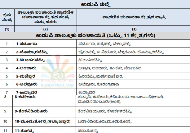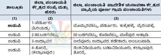 ಕುಂದಾಪುರ: ರಾಜ್ಯ ಚುನಾವಣಾ ಆಯೋಗವು ಕರ್ನಾಟಕ ಗ್ರಾಮ ಸ್ವರಾಜ್ ಹಾಗೂ ಪಂಚಾಯತ್ ಅಧಿನಿಯಮದಂತೆ ಉಡುಪಿ ಜಿಲ್ಲಾ ಪಂಚಾಯತಿ ಅಧಿಕಾರ ವ್ಯಾಪ್ತಿಯ ಪ್ರದೇಶವನ್ನು 30 ಏಕ ಸದಸ್ಯ ಜಿಲ್ಲಾ ಪಂಚಾಯತಿ ಪ್ರಾದೇಶಿಕ ಚುನಾವಣಾ ಕ್ಷೇತ್ರಗಳನ್ನಾಗಿ, ಜಿಲ್ಲೆಯ 7 ತಾಲೂಕು ಪಂಚಾಯತಿಗಳ ಪ್ರದೇಶವನ್ನು ಏಕ ಸದಸ್ಯ ತಾಲೂಕು ಪಂಚಾಯತಿ ಚುನಾವಣಾ ಕ್ಷೇತ್ರವನ್ನಾಗಿ ವಿಂಗಡಿಸಿ ರಾಜ್ಯಪತ್ರದಲ್ಲಿ ಪ್ರಕಟಿಸಿದೆ.