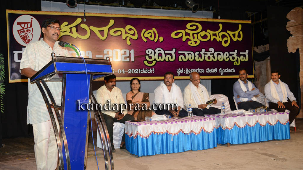 ಅವರು ಇಲ್ಲಿನ ಶಾರದಾ ವೇದಿಕೆಯಲ್ಲಿ ಶನಿವಾರ ಸುರಭಿ ರಿ. ಬೈಂದೂರು ಆಶ್ರಯದಲ್ಲಿ ಆಯೋಜಿಸಲಾದ ರಂಗಸುರಭಿ 2021 ಮೂರು ದಿನಗಳ ನಾಟಕೋತ್ಸವದ ಉದ್ಘಾಟನಾ ಕಾರ್ಯಕ್ರಮದಲ್ಲಿ ಮಾತನಾಡಿ ನಾಟಕಗಳು ಚರಿತ್ರೆಯ ಭಾಗವಾಗುವ ಬದಲು ಜನರ ಮನಸ್ಸಿನಲ್ಲಿ ಸ್ಥಾನ ಪಡೆಯುವಂತಾಗಬೇಕು. ಪ್ರಭುತ್ವವನ್ನು ಪ್ರಶ್ನಿಸಿದಾಗಲೇ ಅದು ಸಾಧ್ಯವಾಗುತ್ತದೆ. ಮನುಷ್ಯ ಮನುಷ್ಯರ ನಡುವಿನ ಕಂದಕವನ್ನು ಮುಚ್ಚುವ ಅರ್ಥಪೂರ್ಣ ಕೆಲಸವನ್ನು ರಂಗಭೂಮಿ ಮಾಡಬೇಕಿದೆ ಎಂದರು.