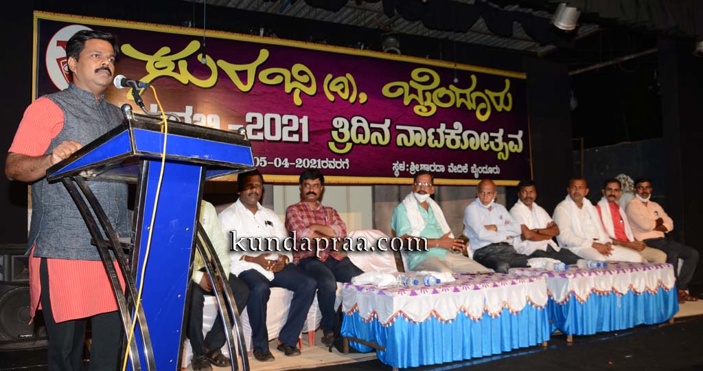 ಅವರು ಸೋಮವಾರ ಇಲ್ಲಿನ ಶಾರದಾ ವೇದಿಕೆಯಲ್ಲಿ ಸುರಭಿ ರಿ. ಬೈಂದೂರು ಆಶ್ರಯದಲ್ಲಿ ಆಯೋಜಿಸಲಾದ ರಂಗಸುರಭಿ 2021 ಮೂರು ದಿನಗಳ ನಾಟಕೋತ್ಸವದ ಸಮಾರೋಪ ಸಮಾರಂಭದಲ್ಲಿ ಮಾತನಾದರು.