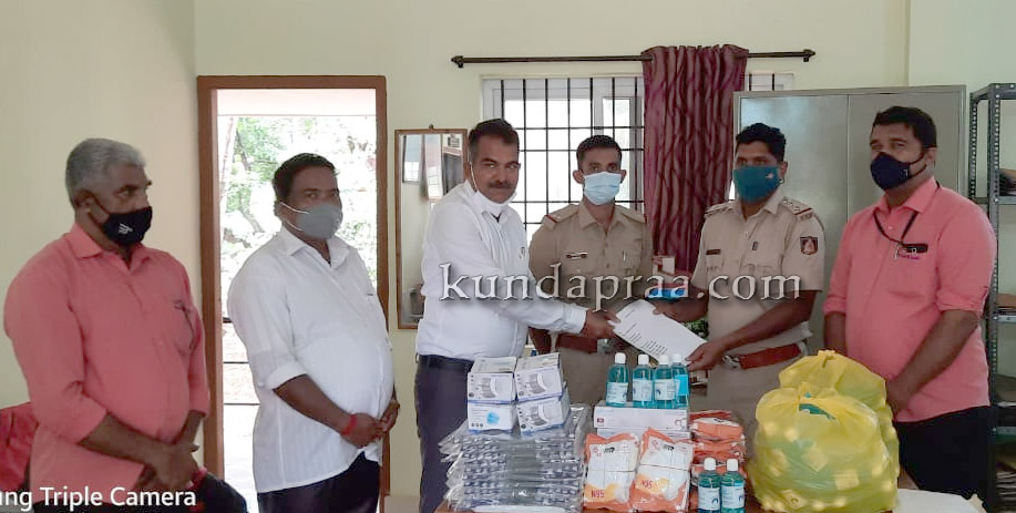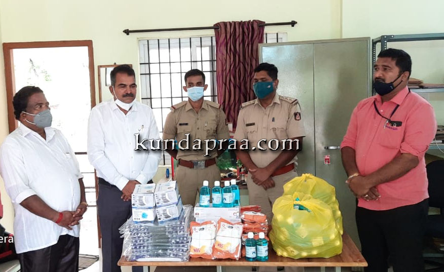 ಖಂಬದಕೋಣೆ ರೈತರ ಸೇವಾ ಸಹಕಾರಿ ಸಂಘ ಉಪ್ಪುಂದದ ಅಧ್ಯಕ್ಷರಾದ ಎಸ್. ಪ್ರಕಾಶ್ಚಂದ್ರ ಶೆಟ್ಟಿ, ಬೈಂದೂರು ವೃತ್ತ ನಿರೀಕ್ಷಕರಾದ ಸಂತೋಷ್ ಎ. ಕಾಯ್ಕಿಣಿ ಅವರಿಗೆ ಕಿಟ್ ಹಸ್ತಾಂತರಿಸಿದರು. ಈ ಸಂದರ್ಭ ಪ್ರೊಬೇಷನರಿ ಪಿ.ಎಸ್.ಐ ಸುಹಾಸ್, ಸಂಘದ ನಿರ್ದೇಶಕರಾದ ಈಶ್ವರ ಹಕ್ಲತೋಡು, ಮುಖ್ಯ ಕಾರ್ಯನಿರ್ವಹಣಾಧಿಕಾರಿ ವಿಷ್ಣು ಪೈ, ಮ್ಯಾನೇಜರ್ ಚಂದ್ರಯ್ಯ ಶೆಟ್ಟಿ ಮತ್ತಿತರರು ಉಪಸ್ಥಿತರಿದ್ದರು.