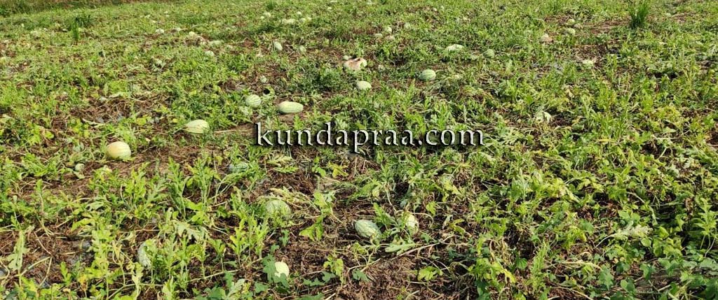 ಕುಂದಾಪುರ: ಲಾಕ್ಡೌನ್ ಹಾಗೂ ಅಕಾಲಿಕ ಮಳೆಯಿಂದಾಗಿ ಕಲ್ಲಂಗಡಿ ಬೆಳೆಗಾರರು ಸಂಕಷ್ಟಕ್ಕೆ ಸಿಲುಕಿದ್ದು, ಸಾಲ ಮಾಡಿ ಬೆಳೆದ ಬೆಳೆಯನ್ನು ಮಾರಾಟ ಮಾಡಲು ಸಾಧ್ಯವಾಗದೇ ಕಲ್ಲಂಗಡಿ ಹಣ್ಣು ಕೊಳೆತು ಹೋಗಿ ಅಪಾರ ನಷ್ಟ ಅನುಭವಿಸುತ್ತಿದ್ದಾರೆ.