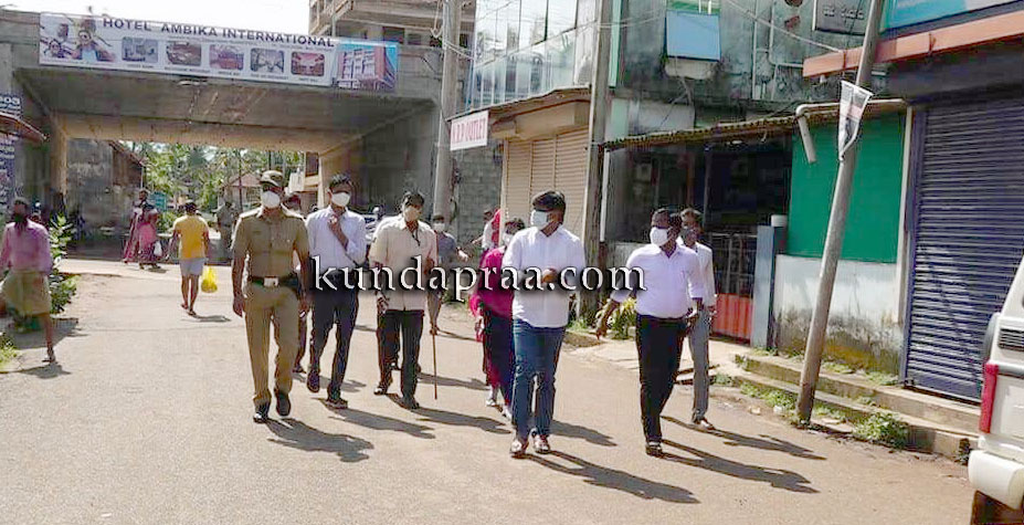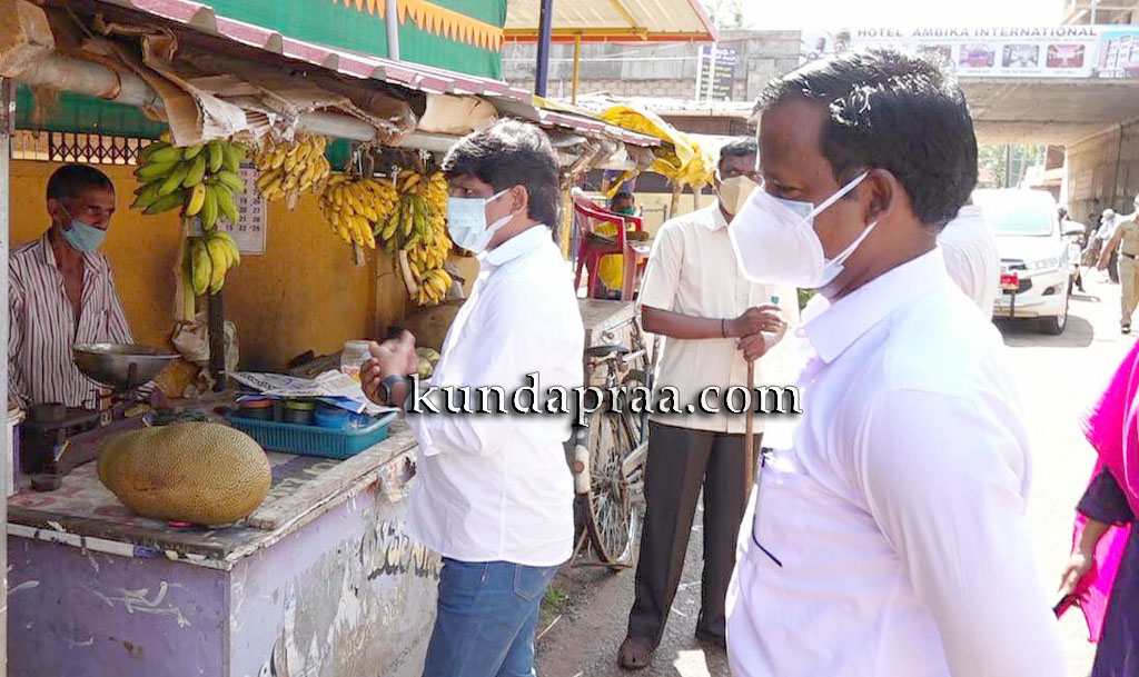 ಬೈಂದೂರು ಪಟ್ಟಣದ ಅಗತ್ಯ ವಸ್ತುಗಳ ಅಂಗಡಿಗಳಿಗೆ ಭೇಟಿ ನೀಡಿ ಪರಿಶೀಲನೆ ನಡೆಸಿದ ಜಿಲ್ಲಾಧಿಕಾರಿ ಜಿ. ಜಗದೀಶ್ ಕೋವಿಡ್ ಮಾರ್ಗಸೂಚಿಯನ್ನು ಪಾಲಿಸಿ ವ್ಯವಹಾರ ನಡೆಸುವಂತೆ ಸೂಚಿಸಿದರು. ಬೈಂದೂರಿನ ಕ್ಲಿನಿಕಿನಲ್ಲಿ ಸಾಮಾಜಿಕ ಅಂತರ ಇಲ್ಲದಿರುವುದನ್ನು ಗಮನಿಸಿ ವೈದ್ಯರನ್ನು ತರಾಟೆಗೆ ತೆಗೆದುಕೊಂಡರು. ಚಿಕಿತ್ಸೆಗೆ ಭೇಟಿ ನೀಡುವ ರೋಗಿಗಳ ವಿವರ ದಾಖಲಿಸಿಕೊಳ್ಳಲು ಮತ್ತು ಸರಕಾರಿ ಆಸ್ಪತ್ರೆಗೆ ರೆಫರ್ ಮಾಡಿದ್ದನ್ನು ದಾಖಲಿಸಿಕೊಳ್ಳಲು ಅವರು ಸೂಚಿಸಿದರು. ಇದೇ ಸಂದರ್ಭ ಬೈಂದೂರು ರಸ್ತೆ ಬದಿಯ ಅಂಗಡಿಯಲ್ಲಿದ್ದ ಹಲಸಿನ ಹಣ್ಣು ಖರೀಸಿದರು.