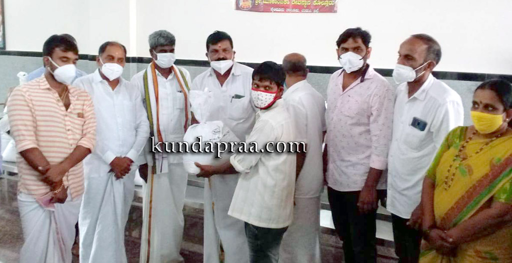 ಕೊಲ್ಲೂರು ಶ್ರೀ ಮೂಕಾಂಬಿಕಾ ದೇಗುಲದ ವತಿಯಿಂದ ಏರ್ಪಡಿಸಲಾಗಿದ್ದ ಬಡತನ ರೇಖೆಗಿಂತ ಕೆಳಗಿರುವ ೫೫೦ಕ್ಕೂ ಮಿಕ್ಕಿ ಕೊಲ್ಲೂರು ನಿವಾಸಿಗಳಿಗೆ ಆಹಾರ ಕಿಟ್ ವಿತರಿಸಿ ಮಾತನಾಡಿದ ಸಚಿವರು ಜೂ.14ರ ನಂತರ ಲಾಕ್ಡೌನ್ ಹಂತ – ಹಂತವಾಗಿ ತೆರವುಗೊಳಿಸುವ ಬಗ್ಗೆ ಮಾತುಕತೆ ನಡೆಯುತ್ತಿದೆ. ದೇಗುಲಗಳು ತೆರೆಯುವ ಬಗ್ಗೆ ಇನ್ನಷ್ಟೇ ನಿರ್ಧಾರ ಕೈಗೊಳ್ಳಬೇಕಾಗಿದೆ ಭಕ್ತರ ನೂಕು ನುಗ್ಗಲಿನಿಂದ ಮತ್ತೆ ಸಮಸ್ಯೆ ಎದುರಾಗುವ ಸಾಧ್ಯತೆ ಇರುವುದರಿಂದ ಸಾಮಾಜಿಕ ಅಂತರ ಕಾಯ್ದು ದೇಗುಲದ ಪ್ರವೇಶಕ್ಕೆ ಅವಕಾಶ ಕಲ್ಪಿಸುವ ಬಗ್ಗೆ ಇಲಾಖೆಯ ಅಧಿಕಾರಿಗಳೊಡನೆ ಚರ್ಚೆ ನಡೆಯುತ್ತಿದೆ ಎಂದರು. ಉಡುಪಿ ಹಾಗೂ ಮಂಗಳೂರು ಜಿಲ್ಲೆಯಲ್ಲಿ ಕೊರೊನಾ ವೈರಸ್ನ ಸಾಧಕ-ಭಾದಕ ಹಾಗೂ ಪ್ರಮಾಣದಲ್ಲಿನ ಇಳಿಕೆಯ ನಂತರ ದೇಗುಲದ ಪ್ರವೇಶಕ್ಕೆ ನಿರ್ಬಂಧ ಅನಿವಾರ್ಯ ಪ್ರತಿಯೋರ್ವರು ಎಚ್ಚರ ವಹಿಸಿ ಜಾಗೃತರಾದಲ್ಲಿ ಮಾತ್ರ ಕೊರೊನಾ ಮುಕ್ತ ಗ್ರಾಮವಾಗಿಸಬಹುದು ಎಂದರು.