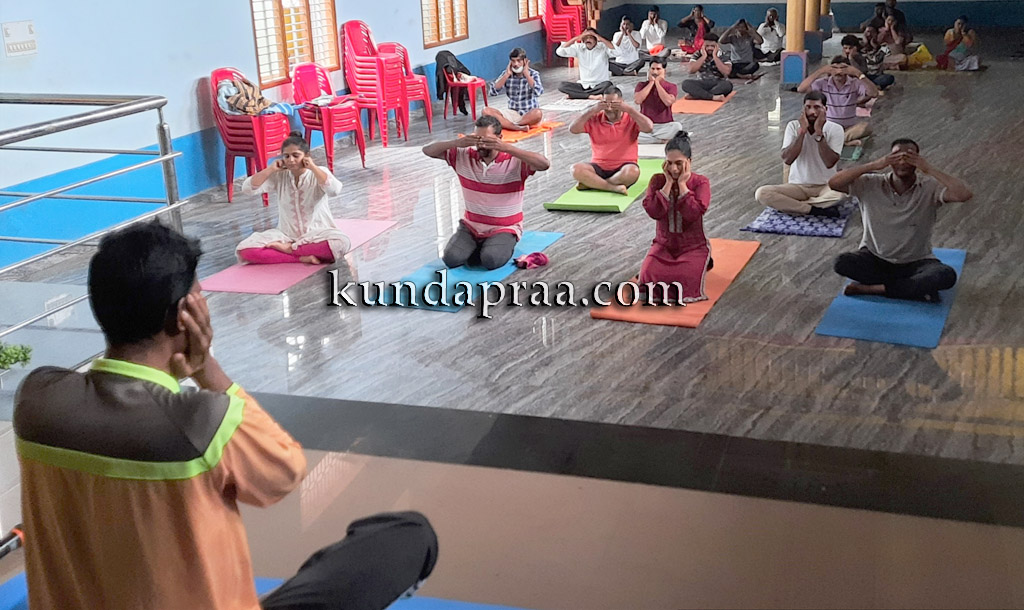 ಗಂಗೊಳ್ಳಿ: ಭಾರತೀಯ ಜನತಾ ಪಕ್ಷ ಬೈಂದೂರು ಮಂಡಲದ ವತಿಯಿಂದ ತ್ರಾಸಿಯ ಮಹಾಗಣಪತಿ ಸಭಾಭವನದಲ್ಲಿ ವಿಶ್ವ ಯೋಗ ದಿನಾಚರಣೆ ಯೋಗ ಶಿಕ್ಷಕ ಯೋಗೇಶ ನಾಯಕ್ ಅವರ ನೇತೃತ್ವದಲ್ಲಿ ನಡೆಯಿತು.