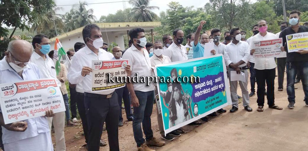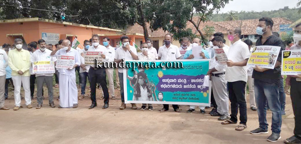 ಬೈಂದೂರು: ಕೋವಿಡ್ ಎರಡನೇ ಅಲೆಯನ್ನು ನಿಯಂತ್ರಿಸುವಲ್ಲಿ ಕೇಂದ್ರ ಹಾಗೂ ರಾಜ್ಯ ಸರ್ಕಾರಗಳು ಸಂಪೂರ್ಣ ವಿಫಲವಾಗಿವೆ ಹಾಗೂ ಕೋವಿಡ್ನಿಂದಾಗಿ ಸಂಕಷ್ಟ ಎದುರಿಸುತ್ತಿರುವ ಜನರಿಗೆ ಸಮರ್ಪಕ ಪರಿಹಾರ ಧನ ವಿತರಿಸಬೇಕು ಎಂದು ಆಗ್ರಹಿಸಿ ಜನಸಾಮಾನ್ಯರ ಧ್ವನಿಯಾಗಿ ಕಾಂಗ್ರೆಸ್ ಪಕ್ಷದ ನೇತೃತ್ವದಲ್ಲಿ ಮಂಗಳವಾರ ಇಲ್ಲಿನ ಶಾಸಕರ ಕಚೇರಿ ಎದುರು ಜನಾಗ್ರಹ ಆಂದೋಲನದ ಪ್ರತಿಭಟನೆ ನಡೆಯಿತು.